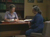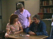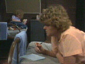 Ann: I'd like to, Milsom. But it seems awfully convenient to point to Edna Pearson as soon as a poisoning happens. I only hope for everyone's sake that Bobbie isn't trying to use her as a scapegoat. She certainly had more motive than Edna for the poisonings. (Judy starts to protest) No Judy I'm sorry there's nothing I can do. (Judy turns and walks out of the office)