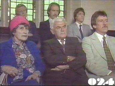 ![]() Jean ~ Christine Amor Lynn ~ Kerry Armstrong Meg ~ Elspeth Ballantyne Lizzie ~ Sheila Florance Erica ~ Patsy King Bea ~ Val Lehman Doreen ~ Colette Mann Greg ~ Barry Quin Steve ~ Jim Smillie Vera ~ Fiona Spence Karen ~ Peita Toppano Sarah ~ Andrea Butcher Barbara ~ Sally Cahill Ken Roberts ~ Tim Elliott Ted Warner ~ Ben Gabriel Catherine ~ Margo McLennan Syd ~ Alan Rowe Dr Barrett ~ Ivor Bowyer Judge ~ Keith Eden Mr Proudfoot ~ John Heywood Clerk of Court ~ Travis Keyes Bailiff V/O ~ Adam Joseph The actor playing the prosecutor has a rather individual style of delivery which could easily be mistaken for atrociously bad acting. The courtroom building There was never a jury | Barbara is still holed up in her cell next morning at the wakeup call. Karen and Bea are sceptical about Barbara's prospects of lasting much longer, and set Catherine straight over her simplistic view that Vera is responsible, pointing out that right and wrong don't make any difference - it's still Barbara who will get the blame. Lynn's father politely turns down Jean's job options for Lynn and tells her he's arranged a placement himself in a friend's nursery ("about a mile away" he claims). Jean grudgingly agrees to go and see if the placement is "suitable". Catherine sees Jean about work: she claims she has never had to do in her life and doesn't see why she should begin now, and tells her she'd be better advised to talk to Barbara and Vera's harassment of her. When Catherine refuses to repeat her remarks in front of the Governor, Jean goes to talk to Erica but she blames Doreen principally but admits Vera is actively encouraging her. Doreen herself confrims that this is true. Karen's court appearance arrives: Steve urges her not to worry, even though the cross examination will be rough on her. Erica tells Vera she intends to report her to the authorities for standing by while one prisoner bashed another. Erica speaks to Barbara and promises to protect her from both Doreen and Vera: she eventually agrees to come out of her cell. Erica decides the only solution is to transfer Barbara to another prison. Steve presents his opening arguments: he says that he will present evidence of mitigating circumstances not heard at the original trial. Ken tells Catherine that people are already gossiping that Sarah was having an affair: he then says he has sold his share in the business and intends to take up a job in Sydney and send Sarah to live with her aunt. However, Catherine seems far more upset by the idea of the house being let and "tenants? using my things?" Dr Barrett gives evidence that Karen was pregnant when he last examined her seven months ago and had a black eye when she came to collect her test results. Erica says goodybe to Barbara as she leaves: Doreen manages to find her way to reception (minus the black eye makeup and with her hair back in its old style) and apologises to Barbara. She admits to Erica she's not cut out to take Franky's place. Jean goes to see Syd's nursery and attends Karen's trial. Greg is cross examined by the prosecutor about his previous knowledge of Karen and accused of manufaturing testimony to help her: he responds that he is not in love with Karen and never was. Jean takes Lynn to meet Syd. Karen gives evidence about her pleasure at the news of her pregnancy and her husband's angry reaction leading to her deciding to have an abortion. The judge agrees to an adjournment when Karen becomes too upset to continue, but the prosecutor indicates to Steve that he thinks it is all an act to play for the jury's sympathy.