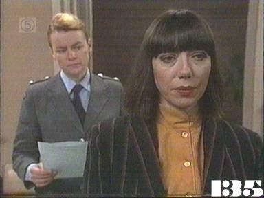![]() Meg ~ Elspeth Ballantyne Judy ~ Betty Bobbitt Lizzie ~ Sheila Florance Erica ~ Patsy King Bea ~ Val Lehman Jim ~ Gerard Maguire Doreen ~ Colette Mann Vera ~ Fiona Spence Kay ~ Sandy Gore Margo ~ Jane Clifton Andrew ~ John Lee Vince ~ John Larking Agnes ~ Lois Ramsay Mr Douglas ~ Ian Smith Mrs O'Reagan ~ Christine Calcutt Julie Reynolds ~ Yvonne Matthew Nancy ~ Anne-Marie Wiles UNCREDITEDMr Spenser ~ Brian MollI have corrected the spelling "Mrs Reagan" as in dialogue the character is referred to as Mrs O'Reagan, and that is how she is credited on later appearances. Erica shows no sign of recognising Agnes, despite reacting to the news of her appointment in the previous episode as if they were old friends. | Andrew accuses Kay of stealing and fiddling the books. When she offers to pay him back with her gambling winnings, he declines and asks her what would have happened if she had lost. Vince stops Kay leaving the office and Andrew phones the police. Erica tells Vera and Jim that the scheme is over, but the newspaper article reporting Kay White's arrest next morning (.. so soon?..) gives Vera further excuse to spread insinuations about Erica. After the women have also seen the paper, Bea assumes that Kay should be blamed for the end of the work release, and Doreen wonders if Noeline might have been right after all to claim that she was framed by Kay. The new social worker, Agnes Forster, arrives for her first day at work in a battered old car, which she parks in Erica's space and then leaves Erica with a heavy kit bag to carry inside for her. Ted Douglas is already waiting for Erica to discuss Vera's report. Erica cannot deny any of the "accusations" and even admits that she'd seen Andrew outside work hours. Nevertheless, Ted tells Erica there will still have to be an enquiry. Jim shows Agnes to her new office. Vera offers Ted a written report but he tells her to post it to him, as the Department is unlikely to take any action for some months. Kay White is brought to Wentworth on remand on charges of embezzlement and theft