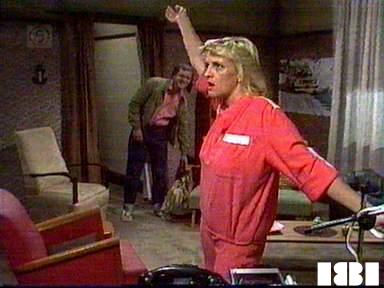![]() Meg ~ Elspeth Ballantyne Judy ~ Betty Bobbitt Lizzie ~ Sheila Florance Erica ~ Patsy King Bea ~ Val Lehman Jim ~ Gerard Maguire Doreen ~ Colette Mann Vera ~ Fiona Spence Margo ~ Jane Clifton Wayne ~ Vince Gil David ~ Serge Lazareff Georgie ~ Tracey Mann Bob ~ Anthony Hawkins Jeannie Baxter ~ Leila Hayes Charlie ~ John Bishop | Vera wants to censor a letter from Ken Pearce to Bea when she sees it contains praise for Bea for setting his daughter straight, but Meg persuades Vera to let Bea have the letter uncut. Meg also passes on to Bea the message from Margo, so Bea realises that Margo had come to get her money. After hearing about the latest scene with Georgie, Bea advises Judy to stick to her own age group in future. Judy asks Bea what she would do if her own daughter had been lesbian, and Bea answers honestly that she'd prefer any of her kids not to be gay, if only because of the unhappiness it seems to have brought Judy. Erica agrees to David's suggestion to encourage Bea to look after Georgie by putting Georgie in to share a cell. To make room, Doreen has to be moved out to share with Judy. Vera can't help herself and makes the obvious remark: that Judy might have more luck with Doreen in view of her past experience of "warped" relationships. Georgie taunts Judy by pulling down the shoulder strap of her overalls as if she's going to do a strip for her: Judy slaps her face, and unfortunately Vera happens to walk in at that moment and come to the wrong conclusion. Meg is overheard by Vera trying to arrange a job for Margo using the staff room phone. Doreen uses David's class to make a protest about the way he's having her moved around like a piece of furniture, and goads Georgie into a fight. David asks Bea to come outside to discuss Georgie, thinking they are too far away for her to hear, but forgetting Georgie's lip-reading skills. He tells Bea she can help Georgie just as she helped Debbie Pearce. Margo hangs around by the perimeter fence until she can talk to Bea, who tells her to be in the same place later that afternoon if she wants her money. Lizzie overhears Vera reduce Judy to tears with a series of insults, culminating with "lumbering 40 year old degenerate". Bea asks Judy to arrange for Margo to have her money using the same tennis-ball trick as was used for Helen to get the plans inside. Georgie pretends to be dizzy so Meg lets her go and lie down, but instead she follows Judy to see what she's up to. Georgie is just examining the hollow tennis ball stuffed with Margo's money when she's caught red-handed by Vera, who demands to know who's really behind the set-up. Having found out who's responsible, Vera lets the fake tennis game ahead and matches to catch Doreen and Margo as well as Judy. Margo's money is confiscated and Judy loses two days privileges. Meg pleads with Erica to let Margo have the money, but Erica won't give in. However, she offers Meg the job of careers officer, and says she can help recently released women too. Bea takes up David's challenge to do something to help Georgie, but then finds out from Doreen that it was Georgie who lagged. She goes to their cell and lays down the law to Georgie and seems about to back it up with a bashing till Georgie quotes back her own words that Georgie was a "bad seed". Georgie's mother is meanwhile being processed in reception