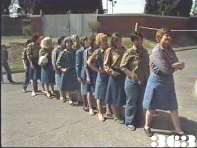 ![]() Meg ~ Elspeth Ballantyne Judy ~ Betty Bobbitt Lizzie ~ Sheila Florance Joan ~ Maggie Kirkpatrick Bea ~ Val Lehman Colleen ~ Judith McGrath Maxine ~ Lisa Crittenden Nola ~ Carole Skinner Lainie ~ Marina Finlay Phyllis ~ Reylene Pearce Denise ~ Geraldene Morrow Gary ~ Richard McFarlane Russell ~ Eden Gill Zara ~ Ilona Rodgers Major Ferguson ~ Carl Bleazby Captain Barton ~ Paul Young Babs Martin ~ Marianne Brooke Joan's father asks her about "Hanno" - the dog who was poisoned in (320). | Lizzie scuttles off to find Maxine to keep an eye on her. Denise and her kids stay at the halfway house, but the kids end up fighting when Gary provokes Russell. Meg tries to find out if Joan is applying for the Governorship, but Joan takes offence at Meg's assumption that she would be doing it mainly for the sake of her father's approval. Lizzie tells Maxine that she's in trouble with Nola over something Lizzie herself has done. Denise and family go home after they are provided with a stove and a lamp to help them out until the electricity is reconnected. Joan refuses to get further supplies in for Nola and tells her she will have to make her own arrangements. Maxine creates a stir in the dining room to get into solitary, but Meg assumes the insurance scheme is back in operation and gives her cleaning duties. Judy gets Captain Barton to help Denise: he brings her some food vouchers. Maxine tries to apologise to Meg when she finds he is going to be on cleaning duty on her own all day, but Meg insists and even refuses to let Lizzie help her. Nola steals away from work and bashes Maxine. Bea comes out of the infirmary and is anxious to find out what's happened to Lizzie. When she returns to her cell after her shower, she finds Maxine, but Maxine won't go to the sister for treatment. Bea starts to have second thoughts about lagging on Nola. Gary Tyler isn't grateful for his mother's new found culinary skills and runs out of the flat. Bea comes back to the laundry and tells the women what Nola did to Maxine. Nola ignores her and offers to sell the women prayer cards soaked in LSD. Babs drops acid and becomes fascinated by the sheets in the laundry