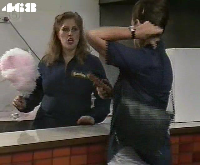 ![]() Meg ~ Elspeth Ballantyne Judy ~ Betty Bobbitt Joan ~ Maggie Kirkpatrick Ann ~ Gerda Nicholson Myra ~ Anne Phelan Reb ~ Janet Andrewartha Dennis ~ Nigel Bradshaw Edna ~ Vivean Gray Leigh ~ Virginia Hey Bobbie ~ Maxine Klibingaitis Marlene ~ Genevieve Lemon Dot ~ Alethea McGrath Marie ~ Maggie Millar Heather ~ Victoria Nicolls Rachel ~ Kim Trengove Off. Barry ~ Joy Westmore Shane Munroe ~ Robert Summers Nicky (Dog) ~ Himself Diedre ~ Anne Charleston Douglas ~ Andrew Gilmore Mrs O'Reagan ~ Christine Calcutt Blonde Woman ~ Carol Reason Male Escort ~ Colin Nicoll Drunk ~ Brian Worth Fairy Floss Attendant ~ Lily Steiner Shooting Gallery Attendant ~ Rob O'Hara Larrikin Kid 1 ~ Nicholas Brennan Larrikin Kid 2 ~ Michael Seen We do not know how many women are in Wentworth, but apparently five dozen steaks are enough to feed them all at the barbecue. The role of Diedre is miscredited to Gael Andrews. The misspelling Christine "Culcutt" is repeated and we also get "Brain" Worth for good measure. | Marlene overhears Ann telling the officers she's been asked to resign. Joan is smugly confident of being appointed, but Meg warns her that she may find there won't be any staff to boss around if she does. Marlene passes the news on to the women. Judy is scornful of Myra's intention to let the Department know of their feelings and demand Ann's reinstatement. Heather points out that it is odd that Joan didn't sound the alarm straight away. Judy lets Myra know her feelings about the thankless task of looking after things while she was out having a "good time". Joan gives Shane his birthday present. Marie sees Myra for the first time in the dining room and trades threats with her new cell mate. The women sort through Leigh's clothes to select items for the fashion show. Marlene snubs Edna's offer of help, making her frown and produce a doom laden chord on the soundtrack. Ann tells Meg that it was Wally who helped Myra when she was on the run. Joan takes Shane to Luna Park