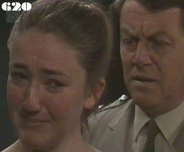 ![]() Meg ~ Elspeth Ballantyne Joan ~ Maggie Kirkpatrick Ann ~ Gerda Nicolson Nancy ~ Julia Blake Rita ~ Glenda Linscott Julie ~ Jackie Woodburne Lexie ~ Pepe Trevor Alice ~ Lois Collinder Jessie ~ Pat Evison Kath ~ Kate Hood Janet ~ Christine Earle Bob ~ Peter Adams Vicki ~ Rebecca Dines Amy Ryan ~ Penny Ramsay Amelia Bassinger ~ Barbara Burder Taps ~ Valma Pratt Steve ~ Peter Hayes Tom Harley ~ Vince Gill Judge O’Grady ~ George Dixon Harry Bassinger ~ John Frawley Gas Company Man ~ Frank Sheenan The actress playing Amelia Bassinger does not seem to be the same as before: I suspect she is actually Judith Roberts. Joan remarks "the Board was light on Lumsden" - another previously unmentioned prisoner, presumably from D block? It sounds odd for both Jessie and Ann to use "Judge" as if it were Mr O'Grady's real Christian name rather than a job title. Nora and Barnhurst are both mentioned in dialogue. Marie Trevor should have stuck to her role as producer: the second half of this episode is simply badly written, and the direction and dodgy camerawork make matters even worse. | Ann tells Joan she should have allowed Steve's visit and makes her phone him to tell him he can visit in future. Steve tells his mother he's in love with someone at Wentworth. She assumes (not having seen any of them) that he means one of the officers: she is appalled to be told it is actually with a prisoner and tells him he is throwing his life away. Janet is dragged to the rec room to be questioned as a possible lagger, but she manages (surprisingly easily) to convince Rita that she is innocent. Rita manages to work out that if Kath has been passing on information about things that happened before she arrived, then someone must have told her about it. She asks if anyone has been talking to Kath and Nancy has to admit she has mentioned the radio controlled car to Kath, but she is sure she didn't say anything about the cocaine. Joan lords it over Meg, citing rules and subsections to justify petty confiscations from the women's cells. Meg warns Joan that if she is using an informer she is playing a dangerous game, which could put the life of the prisoner concerned in question. Taps visits a shopping mall in a lurid red ensemble hoping to attract the attention of Harry Bassinger. Even though Taps seems to have left the hat topped with a neon sign reading "FOLLOW ME" at home, Bassinger can be seen lurking behind a tie rack observing her every move. Alice holds Kath while Rita bashes her. Nancy tries to intervene, but this only alerts Meg to the situation. Meg takes Rita and Alice to the Governor's office along with Lexie, who was acting as lookout. Rita and Alice are sent to solitary and Lexie is given extra cleaning duties. Harry Bassinger follows Taps home: she has now topped off the red ensemble with a bright yellow umbrella just in case he is at risk of losing her. It doesn't say much for her street wisdom that she is actually completely unaware that she is being followed. Ann wants to talk to Steve before he sees Julie: she asks him if anyone could have got the details used against Julie at her parole hearing from reading his thesis. Kath tells Bob his presence in Wentworth puts her in greater danger. Bassinger's wife begs him to go on holiday to get away from the publicity generated by the latest escape: this seems to indicate that she knows very well of his involvement in the previous murders of escapees and worries he is already tracking down Jessie. Nancy apologises to Lexie for getting them all into trouble and they make up over discussing names for Lexie's baby. Kath asks Ann for a transfer, but Ann refuses as she knows there is overcrowding in other prisons. Ann's refusal hardens Kath's attitude and she warns Ann she will have to defend herself in any way she knows in future. Steve shows Julie the engagement ring (to a sleazy jazz cocktail piano accompaniment). Lexie is just about to get heavy with Kath when Janet happens along, but Kath rebuffs Janet's offer of help. Ann advises Bob to consider a transfer himself for his own good as well as Kath's. Bassinger calls the gasman and reports a gas leak at the house where Jessie is staying, so that he can find out the time the engineer is expected to call. Kath refuses to let Nancy play the Good Samaritan and tells her to go away and leave her alone. When Ann leaves Wentworth to visit Dan in hospital, Joan makes a point of asking for a contact number just in case there are any decisions to be made that she can't be trusted to handle on her own. Bassinger gets into Taps' house through the back as the gasman calls at the front, and overpowers Tom. Joan reminds Lexie that this time she's in prison for a long stretch, so she won't stand for any insolence from her. Bassinger makes Jessie tie Tom up and pulls a knife to kill Jessie. With one bound, Tom is free, overpowers Bassinger and Bassinger is taken away. Tom has to pretend to talk to the inaudible off-screen police officers not catered for in the script. Bob makes his decision: he tells Ann and Kath