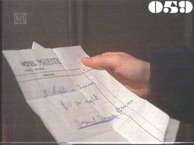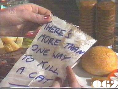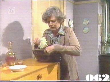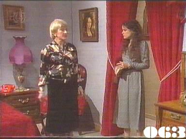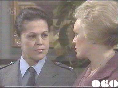 Broadcast on Channel 5 (UK) 05 June 1997 Thurs 4:40 a.m. Martha gives her message to Antonia. CREDITSMonica ~ Lesley BakerMeg ~ Elspeth Ballantyne Lizzie ~ Sheila Florance Erica ~ Patsy King Doreen ~ Colette Mann Greg ~ Barry Quin Vera ~ Fiona Spence Karen ~ Peita Toppano Antonia ~ Pat Bishop Angela ~ Jeanie Drynan Glenys ~ Roz French Mansini ~ Burt Cooper Dr Herbert ~ Henry Cuthbertson Bert Lynch ~ Nick Kislinski Hit Man 1 ~ Gene Van Dam Hit Man 2 ~ Marcel Cugola Officer Phillip ~ Lise Rodgers Officer Owen ~ Sue Silver Tina ~ Joan Brockenshire Simon ~ Rob Hewett Dr Herbert was credited in (50) and (52) to Henry Blake, but the actor here | Karen is impressed by Angela's house (and indeed, a props buyer with unusually good taste seems to have been used). The women start to express doubts about Toni's ability to deliver further goodies, so Toni blames the "lagger". Toni's solicitor tells her that her husband Sean has instructed him that Toni could fend for herself for a while and he shouldn't use up any more "favours" by helping her. An photograph of Glenys appears on news stands, but it is so unconvincing |