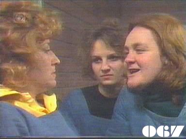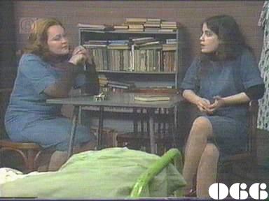 EPISODE 69Broadcast on Channel 5 (UK) 15 June 1997 Sun 4:40 a.m.![]() Meg ~ Elspeth Ballantyne Lizzie ~ Sheila Florance Erica ~ Patsy King Bea ~ Val Lehman Jim ~ Gerard Maguire Doreen ~ Colette Mann Greg ~ Barry Quin Vera ~ Fiona Spence Karen ~ Peita Toppano Pat O'Connell ~ Monica Maughan Chrissie Latham ~ Amanda Muggleton Roslyn Coulson ~ Sigrid Thornton David O'Connell ~ David Letch Officer Phillip ~ Lise Rodgers Officer Barry ~ Joy Westmore Officer Barry tells Chrissie she had morning sickness herself "right up the fourth month", which is a strange way of putting it if she really did have the abortion she later claims to have had. | Erica tells Jim that a work party from the men's prison will be repairing the fence, so she hopes to keep them away from the women to avoid any further pregnancies. Chrissie is taken to see the doctor, though Vera refuses Pat permission to see him too. Erica tells Meg that Chrissie was transferred from Barnhurst for "playing around", but is confident Chrissie is trying to get isolated from the other women. Greg confirms that Chrissie is pregnant, and asks her what she plans to do: she says she wants an abortion. Erica calls for extra security during visits so that the news of Chrissie's pregnancy doesn't get leaked to the press before the Department can hold an enquiry. Karen visits Doreen again, and at the end of the interview gives her the message from Angela to Pat that both Greg and Erica have already refused to pass on - her son David will be in the work party. Jim warns Doreen that passing on the information would threaten her parole. Bea and Lizzie find Officer Barry guarding the door of Chrissie's cell and Bea issues a few veiled threats, knowing Chrissie is listening. After agonising for a while and overhearing Pat talking about her family to Ros, Doreen does tell Pat that David is coming to Wentworth. Greg wants to make sure that Chrissie doesn't make a hasty decision about having an abortion and arranges for her to work in maternity. Pat asks to be allowed to work in the garden, but Erica refuses. Chrissie has morning sickness, and Pat follows her to the shower block and realises she is pregnant when she overhears Chrissie's conversation with Officer Barry. Pat persuades Bea she has to lay off Chrissie, and Bea agrees if Pat can talk Chrissie into keeping the child. Jim catches Pat trying to sneak into maternity |