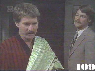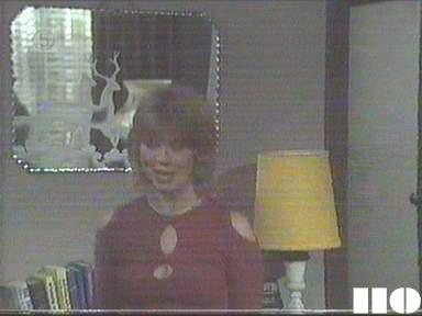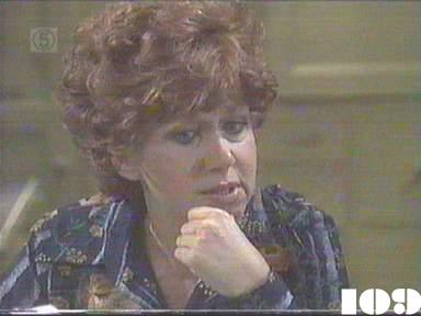 EPISODE 109Broadcast on Channel 5 (UK) 31 July 1997 Thu 11:40 p.m. Carmel tries to allay Pat's fears.![]() Meg ~ Elspeth Ballantyne Lizzie ~ Sheila Florance Erica ~ Patsy King Bea ~ Val Lehman Jim ~ Gerard Maguire Paul ~ George Mallaby Doreen ~ Colette Mann Pat ~ Monica Maughan Vera ~ Fiona Spence Sharon ~ Margot Knight Judy ~ Betty Bobbitt Caroline ~ Rosalind Speirs Ken ~ Tom Oliver Leila ~ Penny Ramsay Michael ~ Peter Ford Geoff ~ Ray Meagher Carmel Saunders ~ Cornelia Francis Greg ~ Barry Quin Det Sgt Parsons ~ Kevin Summers Nicholas Fletcher ~ Joshua Pascoe Matthew Fletcher ~ Damon Pascoe UNCREDITEDJulie (Leila's neighbour) ~ Gael AndrewsHotel Receptionist ~ Bill Bennett OTHER CHARACTERSLouise (halfway house resident)In both this and the next episode Barry Quin's name is spelt "Quinn" in the credits. Thanks to Marie Grahn correcting the name of Leila's neighbour, which I thought was "Sue" for some reason. | Pat tries to silence Doreen when she tactlessly mentions Ken in front of Bea, but not in time to prevent Bea blowing up and saying she doesn't care what Ken does. Jim phones Leila when he's on night duty and finds out about the painted message. Judy tells Sharon she wasn't fooled by Lizzie's act, but admits it made her think. Erica calls on Leila on her way to work and finds out that Jim isn't living at home any more. Jim also calls in on his way back from work and Erica has to make an embarased retreat. After she leaves, Jim and Leila have a huge argument which is only stopped when they both notice the children silently watching from the corridor outside. Bea snaps when Sharon mentions the drama group and issues a general warning that the subject is out of bounds. Carmel goes over the appeals procedure with Pat. The police call at the hotel and ask Jim about the painted message implying that the peron responsible might either be Jim himself or Michael Simpson. Caroline gets an anonymous note at the halfway house, accusing her of being a "WHORE" |