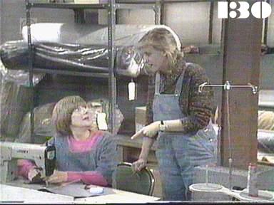 EPISODE 127Broadcast on Channel 5 (UK) 26 August 1997 Tue 11:35 p.m. Gail goes in on remand. Erica tells her not to reveal her crime.![]() Meg ~ Elspeth Ballantyne Judy ~ Betty Bobbitt Lizzie ~ Sheila Florance Erica ~ Patsy King Jim ~ Gerard Maguire Paul ~ George Mallaby Doreen ~ Colette Mann Vera ~ Fiona Spence Noeline ~ Jude Kuring Margo ~ Jane Clifton Gail ~ Susanne Haworth Tim ~ Jeremy Higgins Andrew ~ John Lee Kay White ~ Sandy Gore Vince Talbot ~ John Larking UNCREDITEDOfficer Barry ~ Joy WestmoreNoeline's sister(-in-law?) ~ Joan Millar OTHER CHARACTERSGary Burke ~ David Page (see below)Wayne and Norelle Burke Irene Nagel Magistrate (at Gail's committal hearing) There is a nice visual joke as the camera shot pans down from a poster of James Dean on the wall Thanks to David Page for emailing me to identify himself as the actor who played Gary Burke. He modestly claims that "a massive 15 or so lines was my offering, along with speaking in a disgustingly nasally voice" but at least the PIC here allowed him to prove his involvement in Prisoner to a sceptical friend. | The women are searched before their first day at the factory and Erica warns them yet again not to abuse this privilege. Margo has a perve at some workmen from the window of the minibus on the way. Vera asks to take charge of the keys to the yard, but Mr Reynolds refuses, saying he is quite capable of looking after the security. The foreman Vince Talbot shows the women around the section of the factory where they will be working. Paul speaks up for Gail Summers at her committal hearing, but the magistrate remands her to Wentworth until her trial. Meg is surprised to see Gail brought in as a prisoner. Gail is advised not to tell the women what she's really inside for, and Meg suggests she says she's been charged with shoplifting and can't pay her bail. Jim is less sympathetic to Gail's plight than Meg or Paul. Andrew further infuriates Vera by going behind her back to Erica to ask permission for the women to have lunch outside. Doreen realises that Judy is taking advantage of the break outside to check it out for possible escape routes and tries to talk some sense into her, pointing out that she will need some money. Judy wonders if she can cultivate the factory accountant Kay White, as she seems "sympathetic". Noeline's sister arrives to visit her, but won't stay and leaves a message that the youngest children, Wayne and Norelle are going to be put in a home. Erica calls in at the factory to check how the women's first day has gone. Andrew invites Erica for dinner, but she huffily declines, saying that their relationship must stay on a "professional" level. Noeline asks Paul if the sum of $250 would help keep her kids out of a home, and when he says it would delay the decision, she asks if her kids can be brought in to see her. Gail meets the women for the first time and they are all sorry for her when they hear her burst into whining when she tells her cover story as suggested by Meg. Vera tells Meg her "sympathy" for Gail is just a way of refusing to admit her responsibility for Gail being in prison at all. On the women's second day at the factory, Kay White notices Judy placing a bet with Margo and asks if she can place a bet too. Noeline is released from solitary and sees Gary, Wayne and Norelle in the garden, but she can't get close enough to pass them the money, so she tells Gary about the work release scheme at the factory, so he can try to pick it up from there. Kay brings in her own radio into the workroom to listen to the racing results, and Vera is unable to do anything to stop it |
