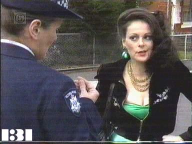 EPISODE 131Broadcast on Channel 5 (UK) 02 September 1997 Tue 11:45 p.m. Judy escapes in a police uniform, and arranges to get forged documents to allow her to flee to America.![]() Meg ~ Elspeth Ballantyne Judy ~ Betty Bobbitt Lizzie ~ Sheila Florance Erica ~ Patsy King Bea ~ Val Lehman Jim ~ Gerard Maguire Doreen ~ Colette Mann Vera ~ Fiona Spence Margo ~ Jane Clifton Gail ~ Susanne Haworth Noeline ~ Jude Kuring Kay ~ Sandy Gore Andrew ~ John Lee Captain Barton ~ Paul Young Tony ~ John Higginson Pauline ~ Anne Pendlebury Weasel ~ Colin Vancao Phyllis ~ Reylene Pearce Mouse ~ Jentah Sobott Newsreader ~ Annette Alison OTHER CHARACTERSProstituteLizzie mentions seeing Chrissie (and her baby) in maternity when she brings the trolley to the laundry. Despite the striking facial similarity of the Newsreader and Prostitute in this episode, they are unlikely to be the same person since, as Robert pointed out in Digest 1632, Annette Alison was a TV presenter in real life, not a dramatic actress. | Erica tells Meg and Vera that the doctors think Judy's heart condition was brought on by electrical interference from the driers. Meg passes on the information in Judy's letter about her father and Erica is displeased not to have been told before. Bea warns all the women, including Doreen, not to mess up the work release program. Gail is reduced to tears by the women's taunts. Erica finds out that Meg hasn't told her that she's Gail's next door neighbour and says she wants all information on prisoners to be passed to her directly in future. Still in her policewoman's uniform, Judy phones an ex-lover, and she is invited to stay there while her husband is away on business for a few days. Vera goes straight to Gail and tells her that the children have been put in a home. Meg is appalled by the spitefulness of it and tells Vera so. Erica finally takes Doreen off the work release program, but tells her Andrew Reynolds will be warned not to accept any tenders from Kevin, no matter how low they are. Meg explains to Gail the home circumstances that led to her children being taken into care and tells her it may improve her own chances of getting custody. Gail isn't so sure and wonders if she could be trusted alone with the kids ever again. Doreen is forced to tell Bea what Vince has been doing to her. Captain Barton takes over Gail's case in Paul's absence and suggests she contacts Parents Anonymous. Pauline offers to lend Judy money to help her get the forged papers from a contact she got inside. Tony comes to the prison, having found a job in Adelaide with the chance of a partnership if he can get the money from his father. Meg stops Vera from holding forth on the subject of child abuse by saying that from what she's heard of her childhood her mother's treatment of her would count as mental cruelty. Vera counters with a question: if Meg's own childhood was so wonderful, why does she never speak about it? Flowers arrive for Erica from Andrew. Lizzie finds out from a file on Erica's desk that Phyllis has been selected to take Doreen's place. To get Bea selected instead, Phyllis pulls Gail's hair when Erica enters the rec room to make the announcement. Bea acts "responsibly" by restraining Phyllis and Erica makes a snap decision to give the vacant place on the scheme to Bea. Noeline suggests to Margo that they'd better band together to get Bea off the scheme, because she's sure to put a stop to Margo running her book as well as the fiddle Noeline has planned with Kay. Margo tells her to "rack off, hairy legs". Doreen fills in Bea about the factory and as Noeline predicted, she tells Margo she won't be running a book. Margo changes her mind and plots with Noeline. Vera enlists Jim's support in complaining about Bea being allowed on the scheme. Judy adopts a tortured half-Oirish accent and goes to see the Weasel: he tells her a passport will cost her five hundred dollars. Erica tries to tell Andrew she can't see him any more, but he tells her he wants to get to know her better. Margo delays Jim so Noeline can get into position so when he turns the corner Noeline is apparently writhing in agony after a bashing from Bea. Meg tells Vera what she thinks of her and that if she despises prisoners so much that ought to apply to her too, as she was born in prison. Andrew asks Kay to organise a stock check. Mouse goes on the factory scheme instead of Bea. Judy cons money out of a prostitute by pretending to be a policewoman on the take. Kay cuts Noeline in on her scheme, and Noeline pretends to need first aid so she can take a look at the tea room. Judy gets a letter forwarded to Pauline's from her sister to say that her father has died, before they could have made peace with each other. Kay reports to Andrew that there is $500 of material missing and blames the women, and tells him when she thinks the next "drop" is due. |