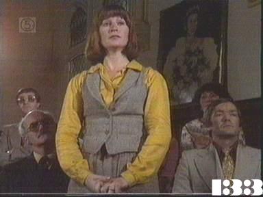EPISODE 133Broadcast on Channel 5 (UK) 08 September 1997 Mon 11:25 p.m. Judy is returned to Wentworth and placed in solitary confinement; Andrew attempts to exploit the women as a cheap labour force; and Gail's trial begins.![]() Meg ~ Elspeth Ballantyne Judy ~ Betty Bobbitt Lizzie ~ Sheila Florance Erica ~ Patsy King Bea ~ Val Lehman Jim ~ Gerard Maguire Doreen ~ Colette Mann Vera ~ Fiona Spence Margo ~ Jane Clifton Gail ~ Susanne Haworth Kay ~ Sandy Gore Andrew ~ John Lee Vince ~ John Larking Tim ~ Jeremy Higgins Captain Barton ~ Paul Young Defence Lawyer ~ Bill Evans Prosecutor ~ Will Deumer Judge ~ James Taylor Jury Foreman ~ Norma Evans Officer Powell ~ Judith McGrath UNCREDITEDHazel Crowe ~ Maureen EdwardsOfficer Barry ~ Joy Westmore Nancy ~ Ann-Marie Wiles OTHER CHARACTERSThe Judge is credited as James Taylor but it seems to be another actorOfficer Meadows' first name seems to be Sue. | Judy is brought back to Wentworth (and claims sarcastically to Jim that she's Doris Day) charged with escaping, assault on a policewoman, stealing police property (the uniform, which she is still wearing) and impersonating a police officer. Jim and Vera notice she is also carrying a large amount of money that the police have not noticed, so Jim logs it in as Judy's own property even though Judy admits she got it through extortion. Judy at first refuses to go into the solitary cell, but Jim manages to persuade her. As she sits in the cell her profile |