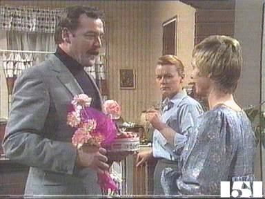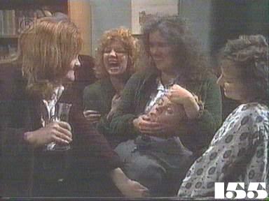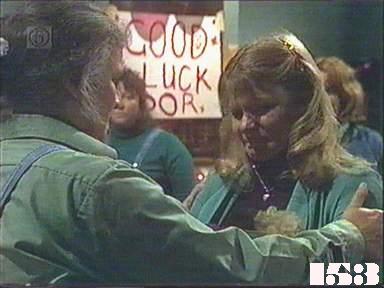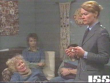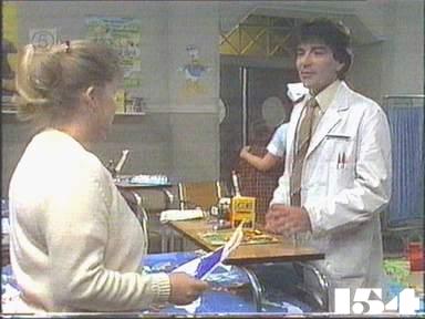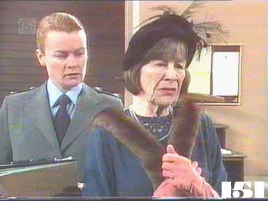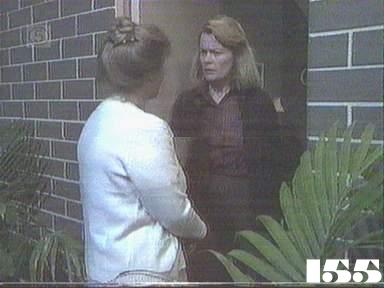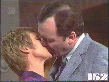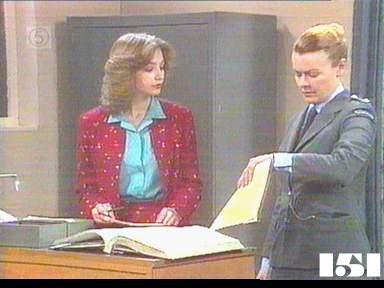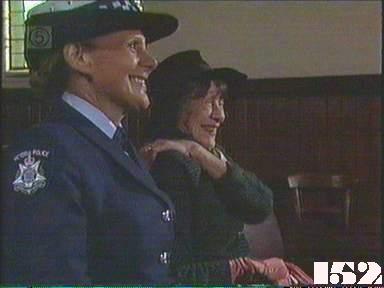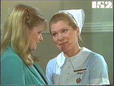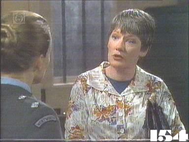 EPISODE 152Broadcast on Channel 5 Monday 27th October 1997 23:45 Doreen is offered a job at the hospital. Meg and Bob's relationship develops and Tracey's jealousy surfaces. Chrissie gets a mysterious visitor; and Sarah is horrified when she discovers what Jim does for a living.![]() Meg ~ Elspeth Ballantyne Judy ~ Betty Bobbitt Lizzie ~ Sheila Florance Erica ~ Patsy King Jim ~ Gerard Maguire Doreen ~ Colette Mann Vera ~ Fiona Spence Chrissie ~ Amanda Muggleton Tracey ~ Sue Devine Bob ~ Anthony Hawkins Sarah Forrest ~ Diane Craig Frank Henderson ~ Syd Conabere Charles Baldwin ~ Michael Duffield Judge ~ Arthur Barradell-Smith Counsel For Crown ~ John Proper Tipstaff ~ John Powell UNCREDITEDNurse Benson ~ Gael AndrewsOfficer Bailey ~ Maureen Edwards Julie ~ Christine Jack Officer Carter ~ Dawn Klingberg Policewoman ~ Jacqui Jackson OTHER CHARACTERSWaiter in the Indian restaurantThe Judge The woman serving tea for the Judge | Tracey asks Judy for advice about Vera's spiteful comments. Vera blames Jim's rosters for her being a physical wreck, but Jim hints that there could be other reasons for that. Bob admits he is seeing Meg when Tracey challenges him to deny it, though when we see Meg at home she is waiting for Bob, who seems to have stood her up. Doreen visits the hospital with Erica and is interviewed by Dr Henderson and seems to make a good impression on him. Judy reminds Tracey she has Meg to thank for saving her life and so perhaps she could let her father express his gratitude to Meg however he wants. Vera snidely remarks to Jim that he seems very interested in interior design all of a sudden. Doreen gets along well with the kids in the children's ward and impresses Dr Henderson with how well she has been coping. He doesn't even seem to mind Doreen throwing the kids roughly onto their beds and then admitting in the next breath that some of them can't smile because they've just had their appendix out. Bob turns up late at Meg's with a takeaway Chinese meal |