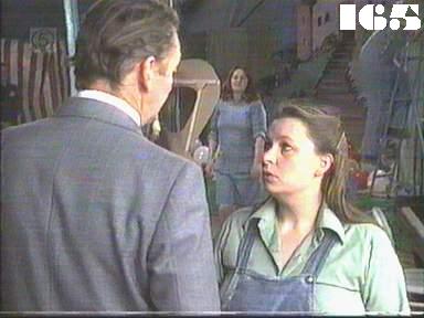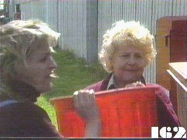 EPISODE 163Broadcast on Channel 5 Wednesday 19th November 1997 23:45 Ann is convinced that the forged letter is from Megan. And plans continue for the escape.CREDITSMeg ~ Elspeth BallantyneJudy ~ Betty Bobbitt Lizzie ~ Sheila Florance Erica ~ Patsy King Bea ~ Val Lehman Jim ~ Gerard Maguire Doreen ~ Colette Mann Vera ~ Fiona Spence Margo ~ Jane Clifton Helen ~ Caroline Gillmer Gillespie ~ Wynn Roberts Anne ~ Rowena Wallace Bob Morris ~ Anthony Hawkins Policewoman ~ Joy Mitchell Phyllis ~ Reylene Pearce UNCREDITEDMr Collins ~ James TaylorGate Guard ~ Roy Edmunds OTHER CHARACTERSMan at City Hall (Thanks to Tim Coward for identifying the actor Bill BennettLizzie's memory is at fault when she claims that Ann yates was stuck in the drier for "days". | Vera catches up with the policewoman just as she is leaving to tell her the truth about Anne's letter. Bea finds Anne packing her bags, confident that Megan will clear her. Anne is asked for a sample of her handwriting to prove she didn't write the letter she handed over to the police. Judy tells Bea that Mouse and Irene want to come along on the escape. Margo says Doreen must be mad to trust Helen with her money, and Bea warns Helen not to take a penny more than she needs. Meg asks Vera if she's sure there was no letter from Megan: if the letter was forged by Anne, then perhaps Megan is just a figment of her imagination. Lizzie rehearses her part in the pantomime with L plates on, as she's a "learner" Fairy Godmother |