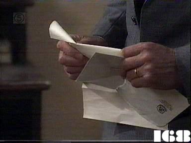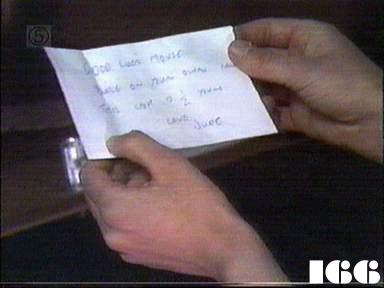 EPISODE 168Broadcast on Channel 5 Tuesday 2nd December 1997 23:45 Gillespie attempts to introduce blanket censorship as unrest mounts within the prison; and both Judy and Lizzie write letters to the Ombudsman.CREDITSMeg ~ Elspeth BallantyneJudy ~ Betty Bobbitt Lizzie ~ Sheila Florance Erica ~ Patsy King Bea ~ Val Lehman Jim ~ Gerard Maguire Doreen ~ Colette Mann Vera ~ Fiona Spence Gillespie ~ Wynn Roberts Bob Morris ~ Anthony Hawkins Margo ~ Jane Clifton Wally ~ Alan Hopgood Off. Powell ~ Judith McGrath Mr Douglas ~ Ian Smith Sgt Parker ~ John Murphy Hazel Kent ~ Belinda Davey | Wally tells Judy he saw her photo in the newspaper, but tells her he has no intention of telling the police where she is, inviting her to stay as long as he likes. He is surprised when she turns down the offer of "a smoke", so Judy offers to explain why she is so opposed to drugs by telling him her story. Lizzie and Doreen are allowed out of sickbay. The women are delighted by the TV news that Judy is still on the run: Gillespie is annoyed and wants to have TV and radio privileges taken away. Erica tells him she will only agree to have the newspapers censored. Bea regrets that Anne has been transferred to a psychiatric hospital before she had the chance to fix her. Gillespie tells Vera to censor the papers but cuts her down to size when she suggests his own idea about TV and radio. Judy is disappointed that the letter she left in her cell hasn't been mentioned in the newspapers and is inspired by Wally's' suggestion that she writes to the Ombudsman. Doreen is told she'll be facing an additional charge for the escape at her trial for kidnapping. When Erica suggests that she hires some legal representation, Doreen is forced to admit that she has no money left in her account. Wally tries to persuade Judy not to send her letters, but ends up agreeing to post them for her. Lizzie takes an old packet of yeast from the kitchen to make grog and sets to work in the rec room store cupboard using two cleaning buckets. The TV and radio in the rec room mysteriously stop working. Next day a diversion is arranged as Vera is carrying the papers inside, so that Lizzie can get hold of an uncensored paper. Bea is pleased that Judy's letter has made the press after all. Gillespie tells the officers that they must work in pairs from now on: Erica is forced to agree with him. Lizzie hands Vera a letter she's written to the Ombudsman, but is told it has to be posted in a special envelope. Erica goes to see Ted Douglas to ask him again to do something about Gillespie, and he agrees to put her case to the Minister. Colleen sarcastically offers to act as escort for Gillespie when she finds him walking the corridors alone: she tells him the security arrangements have been raised with the Union. Gillespie and Colleen overhear Bea dictating a letter to the Ombudsman full of untrue accusations: he tells Bea not to waste her time sending it. Jim phones Meg to ask her to cover for an officer on sick leave, but she refuses. Bea's cunning plan is to provoke Gillespie to substitute another letter for the one he overheard her dictating, as even opening a letter to the Ombudsman is a criminal offence and would get him sacked: she knows that Colleen overheard and would be a witness to what was in the original letter. A detective interviews Doreen about her bank account, but she refuses to say who drew the money out. Vera is appalled to see Gillespie opening Lizzie's letter to the Ombudsman (with Wentworth crest visible |