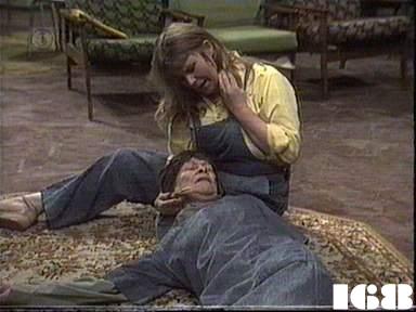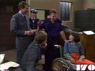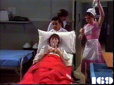 EPISODE 169Broadcast on Channel 5 Thursday 4th December 00:10 Vera performs external heart massage on Lizzie until an ambulance arrives and she is taken to hospital; Judy meets Wally's daughter; and Lizzie receives a letter from Ellen in America.CREDITSMeg ~ Elspeth BallantyneJudy ~ Betty Bobbitt Lizzie ~ Sheila Florance Erica ~ Patsy King Bea ~ Val Lehman Jim ~ Gerard Maguire Doreen ~ Colette Mann Vera ~ Fiona Spence Micki ~ Deborah Coulls Wally ~ Alan Hopgood Off. Powell ~ Judith McGrath Hazel ~ Belinda Davey Sid ~ Edward Hepple Nurse ~ Linden Wilkinson Dr Marsden ~ Gary Gray Mr Douglas ~ Ian Smith UNCREDITEDMartin Handley ~ David HursthouseGraeme Hopkins ~ Peter Flett Wendy ~ Helen Noonan The non-speaking nurse tending Lizzie OTHER CHARACTERSDoreen's solicitorAll the other characters call Sid "Mr Humphries" though when he introduces himself to Bea, he definitely says "Humphrey" - as in the credits in (211) I suspect the credit for "Gary Gray" is wrong - I am sure this actor appears again under a different name. | Vera gives Lizzie mouth-to-mouth resuscitation while the women wait for the ambulance to arrive. Meanwhile, Hazel removes the bucket of booze from the store room behind Vera's back. Ted Douglas tells Erica a teacher will be appointed to a new education facility in the prison. Vera feels guilty that she didn't believe Lizzie at first, but she recovers her usual character in time and remembers about the grog manufacture, which she rushes off to investigate. When she gets to the rec room, the buckets have vanished but Vera tells Bea she must have known what was going on and must see the Governor. In hospital, Lizzie describes her near-death experience to a doctor in the usual cliched terms involving bright lights at the end of a tunnel. Vera takes Bea to the Governor to explain what she knows about the home brew, and Bea is honest for once: she tells Erica the home brew has been flushed down the toilet. Erica decides not to punish anyone for the incident, and tells Bea officially that Gillespie has gone. Erica asks Colleen if her husband could fix the rec room TV: she says her husband is hopeless as a handyman [odd, then, that he should later run his own garage?] but says a retired neighbour, Sid Humphrey would be perfect for the job. Lizzie's doctor alerts a friend in the media to her story as a way of putting pressure on the authorities to have her freed. Sid visits the prison and agrees to fix the TV for the cost of parts only. Vera is puzzled and disconcerted when the women are friendly to her, as Bea agreed to Erica that they would be. Erica reverses all of Gillespie's extra security measures. Sid fixes the TV and tells Bea that one of the valves had been deliberately removed, and as he leaves he offers his services to Erica as a general handyman in future. Judy hides when a visitor for Wally drives up on a motorbike, but it is only his daughter Micki. Bea plots to get Sid back to do some more repair jobs to help him out. Micki offers to deliver a letter from Judy to the PRG. Doreen sees her solicitor, who tells her she has a good chance of getting off lightly on the kidnapping charge, but that she will be treated more harshly for the escape. Wally shows Judy the paper where she has been described as a violent criminal, on account of her previous escape where she knocked out a policewoman. Meg defends the education programme against Vera's criticisms. One of the nurses gives Lizzie the remote control to her TV and she only has to change channels once to come across a program where someone is arguing for her release. The women in Wentworth are also watching, and Doreen hopes Lizzie hasn't seen it, as she may not be able to cope with the idea of being freed. Judy finds out about Lizzie's heart attack from Micki's description of the same programme, and realises that Micki is right when she says it would be a perfect opportunity to get more publicity for Judy's campaign to raise awareness about prison conditions. Erica tells Doreen to be positive about her forthcoming trial, despite what her solicitor told her. Micki tells Judy that she can borrow a video camera so Judy can make a statement that can be shown on TV without her having to contact a TV station in person. Meg visits Lizzie and gives her a letter from Ellen and Josie. It says that Ellen is getting married and that she and her husband want Lizzie to come over to America to live with them. |