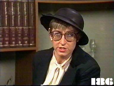 EPISODE 187Broadcast on Channel 5 Friday 16 January 1998 04:40 Lizzie has disappeared, Bob entertains important clients, and Chrissie is transferred to H Block.![]() Meg ~ Elspeth Ballantyne Judy ~ Betty Bobbitt Lizzie ~ Sheila Florance Erica ~ Patsy King Bea ~ Val Lehman Jim ~ Gerard Maguire Doreen ~ Colette Mann Vera ~ Fiona Spence David ~ Serge Lazareff Chrissie ~ Amanda Muggleton Bob ~ Anthony Hawkins Dr Evans ~ Ric Harley Hal Leifenbacker ~ Randall Berger Lois Leifenbacker ~ Barbara Ramsay Shop Woman ~ Moira Claux Shopper ~ Veronica Haywood OTHER CHARACTERSNurse (in the scenes with Dr Evans)Shop Assistant (in chemist's shop) Motorcyle Cop | Vera thinks that Lizzie hasn't escaped at all and that the women are hiding her to play a joke on the officers. Jim says the same thing to Erica, and Erica throws a fit of pique and has the women confined to their cells until Lizzie turns up - or the women admit what they are doing. Lizzie selects some clothes and a hat from a charity shop then pretends to have left her bag on the bus: the woman running the shop not only says she can take the clothes and pay for them later, but also give Lizzie two dollars from her own purse. Lizzie |