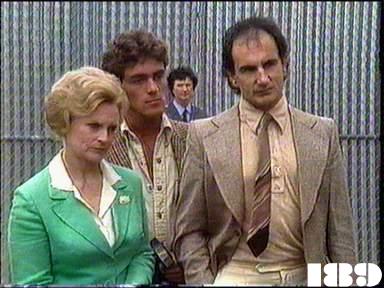 EPISODE 189Broadcast on Channel 5 Sunday 18 January 04:40 Trouble brews over the conjugal visiting suite.![]() Meg ~ Elspeth Ballantyne Judy ~ Betty Bobbitt Lizzie ~ Sheila Florance Erica ~ Patsy King Bea ~ Val Lehman Jim ~ Gerard Maguire Doreen ~ Colette Mann Vera ~ Fiona Spence David ~ Serge Lazareff Chrissie ~ Amanda Muggleton Hazel ~ Belinda Davey Ken ~ Tom Oliver Bob ~ Anthony Hawkins Mick ~ Michael Long Mr Campbell ~ Robin Cuming Bevan Taylor ~ Rob Hewett Wendy ~ Helen Noonan Mr Douglas ~ Ian Smith Greg Guthrie ~ Graeme Anderson June Guthrie ~ Yvonne Foley OTHER CHARACTERSParole trainee (on the course with Meg)The (silent) photographer The building where Meg goes for parole training has a notice (hastily?) pasted on a pillar to identify it as part of The Department | Chrissie returns to the laundry sobbing and Bea makes veiled remarks to Vera to indicate that she holds her responsible. Doreen predicts Meg will be back soon as an officer, just like the last time she resigned. Meg finds Chrissie in her cell in tears, but can't do anything more for her than promise to speak to Erica about arranging another visit from Mick. Bea writes a letter to Ken to tell him he can visit again and seals it with sealing wax. Erica hopes the issue of the paternity of Chrissie's child won't be brought up again as she's due for parole in a few weeks. Meg convinces Erica that supervised visits from Mick can't do any harm. A reporter arrives to interview Erica about the visiting scheme: her optimistic description is heard over the reality - Vera inspecting a child's rag doll to check it for contraband. Ted Douglas phones Meg to make an appointment to discuss her application. When the reporter is shown around the visiting suite the couple in occupation protest that they are being treated like animals in a zoo. Bea advises the women to go along with the schemes for now, as the officers are obviously happy to bend the rules - for her and Ken as much as for Chrissie and Mick. Hazel is taken to the Governor's office to be interviewed, but Erica calls a halt to the interview when the journalist only seems interested in whether Hazel had sex during the visit. Ted agrees to let Meg go as an officer if she will take on all the casework from Wentworth. He adds that she will have to start on a course the following day or wait for three months for the next one. Erica is pleased by Ted Douglas's praise for the press coverage |