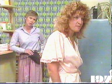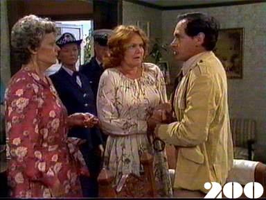 EPISODE 200Broadcast on Channel 5 Tuesday 03 February 1998 04:40 Mum pleads with Bea to give herself up to the police. Judy and Doreen finally admit they were setting up Margo. Meg tries to matchmake when she realises Terry is interested in Vera.![]() Meg ~ Elspeth Ballantyne Judy ~ Betty Bobbitt Lizzie ~ Sheila Florance Erica ~ Patsy King Bea ~ Val Lehman Jim ~ Gerard Maguire Doreen ~ Colette Mann Vera ~ Fiona Spence Mum ~ Mary Ward Margo ~ Jane Clifton Phyllis ~ Reylene Pearce Terry ~ Brian Hannan Off. Powell ~ Judith McGrath Det Sgt Rouse ~ Paul Karo Teacher ~ Carole Browne OTHER CHARACTERSRadio Newsreader (V/O) | Meg goes to phone the police but Mum tells her Bea needs medical attention. Meg agrees to go see Bea before alerting the authorities. In Erica's office, Judy and Doreen explain that they planted buy-up goods on Margo but that someone must have double-crossed them. Erica lets them off but wants no more in-fighting. Vera rebuffs Terry's advances, Jim then bets Terry that he can't get Vera to agree to a date. Mum and Meg arrive at the house to find Bea has left - with Mum's house keeping money. Meg calls the police. The police report that the van officer has come out of their coma and cleared Bea of causing the accident. Mum says that she went to Meg just after Bea arrived, but they are sceptical. Bea goes to school to pick up Debbie. No one knows who Debbie is. While pretending to side with Margo, Lizzie discovers that it was Phyllis who alerted Margo to the set up. Lizzie lures Phyllis to the laundry, where Judy and Doreen attack her. Margo arrives and has Bev and Lil put Judy up against a dryer to damage her pacemaker. Judy is forced to beg Margo's forgiveness |