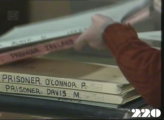 EPISODE 220Broadcast on Channel 5 Tuesday 03 March 1998 04:40 Don threatens to take the matter of the attack further. Bea is interested in Alison's access to files. And Kathy is let out of prison - with tragic consequences.CREDITSJudy ~ Betty BobbittLizzie ~ Sheila Florance Erica ~ Patsy King Bea ~ Val Lehman Jim ~ Gerard Maguire Doreen ~ Colette Mann Vera ~ Fiona Spence Terry ~ Brian Hannan Alison ~ Fay Kelton Kathy ~ Sue Jones Sid ~ Edward Hepple Don Page ~ Stuart Finch Wendy ~ Helen Noonan Hazel Kent ~ Belinda Davey Workman ~ Jack Perry Paul Tranter ~ Laurie Dobson Gerry ~ Rod Densley Frank ~ John Bishop Foreman ~ Bob Horsfall The names on the files Alison is handling The reclining figure seen behind Jim on the noticeboard | Don is furious with the security after the assault on Alison, and takes it out on Jim. A repair man comes to fix the washing machine. Judy is a little put out that Alison has read her file, but Bea thinks it is good that Alison has access to files. Vera tells Terry about her job application. Hazel Kent asks Alison to get her file, because her parole application is due soon, and she wants to know what has been written about her. Alison refuses at first, but changes her mind when Hazel threatens her with Bea. Alison is almost caught by Vera when she lends the file to Hazel. Don has problems at work because he is constantly behind. Hazel is desperate when she reads what is in her file and finds that Vera has put in some very damaging references. Jim hears about Vera's job application, and Alison takes the opportunity to replace the file while Jim and Vera chat about it. Don gets a telephone call from a dissatisfied customer, and loses an order because of it. Alison asks Terry about Hazel's hearing, and finds out it is to be postponed. Hazel is furious with Vera because she must wait another three months, and attacks her. Vera gets suspicious that someone must have read Hazel's file. Erica tells Vera that she has put in a good word for her with Mr. Douglas. Sid comes for to pick up Lizzie. Doreen comes out of solitary with three months added to her sentence. Hazel gets two months for attacking Vera. Kathy believes that only way she wil stay in prison is to assault someone, and gets Vera to come to her cell. She pours turpentine over Vera, and threatens to set her alight, but Terry stops her in time. Terry manages to convince a furious Vera that it is better not to prevent Kathy being released. Bea wants Alison to get hold of other prisoners' files, and won't take no for an answer. Bea and the others thinks it is very strange that Vera hasn't taken action over Kathy's assault. Kathy is released, and Terry accompanies her to the gates. Terry assures Kathy that she is safe, and says goodbye to her, but Kathy she is hardly through the gates |