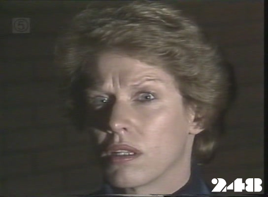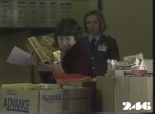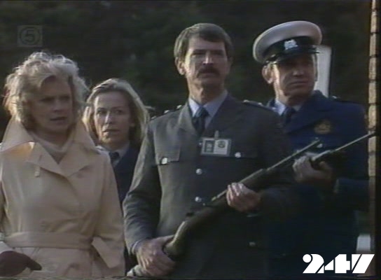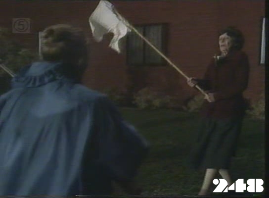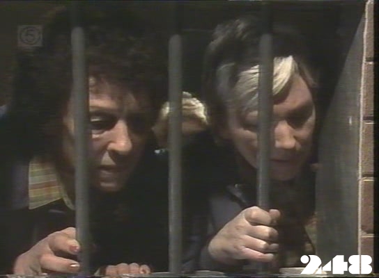EPISODE 248Broadcast on Channel 5 Sunday 12 April 1998 04:40 The storming of the prison is called off when the women throw Steve Fawkner's uniform out of the prison. Janet is still in hiding.![]() Meg ~ Elspeth Ballantyne Lizzie ~ Sheila Florance Erica ~ Patsy King Bea ~ Val Lehman Jim ~ Gerard Maguire Officer Powell ~ Judith McGrath Kate ~ Olivia Hamnett Steve ~ Wayne Jarratt Sandy ~ Louise Le Nay Marie ~ Maggie Millar Margo ~ Jane Clifton Janet ~ Kate Sheil Insp. Thorn ~ Peter Aanensen TV Announcer ~ Tony Porter Sister ~ Wilma Farrow Sergeant Hanley ~ Peter Pawlsen Something tells me this isn't even a proper set given the tight focus on the window | Kate has the near-naked Steve thrown into a cell. She gives him some pajamas, |