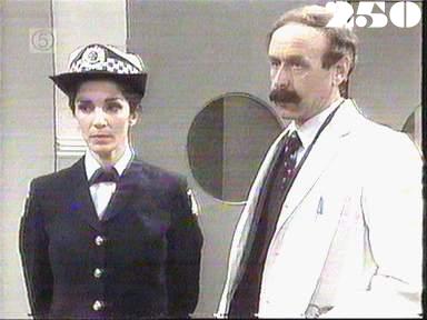 EPISODE 249Broadcast on Channel 5 Tuesday 14 April 1998 04:40 Sandy's seduction of Steve is interrupted and Janet is mistaken for a prisoner, with unfortunate consequences.![]() Meg ~ Elspeth Ballantyne Lizzie ~ Sheila Florance Erica ~ Patsy King Bea ~ Val Lehman Jim ~ Gerard Maguire Officer Powell ~ Judith McGrath Hazel ~ Belinda Davey Kate ~ Olivia Hamnett Steve ~ Wayne Jarratt Gordon ~ Bruce Kerr Sandy ~ Louise Le Nay Marie ~ Maggie Millar Phyllis ~ Reylene Pearce Janet ~ Kate Sheil Officer Barry ~ Joy Westmore Prosecutor ~ Robbie McGregor Magistrate ~ David Nettheim Mr Douglas ~ Ian Smith Policeman ~ Michael Rowan Nurse ~ Saturday Brander Mr. Oliver ~ Nik Forster | Sandy is with Steve in his cell. Steve makes a comment about being exploited which makes Sandy chuckle. She then gives Steve the choice of her or some of her mates outside. Steve quickly chooses her. They hear noise from outside. Sandy goes to investigate and Steve overpowers her |