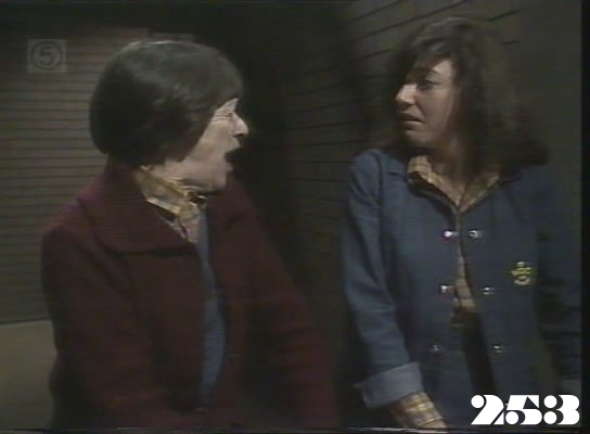 EPISODE 253Broadcast on Channel 5 Sunday 19 April 1998 04:40 The women suspect that Bea and Sandy have set Marie up, but there is no proof. Meg learns that the Board is due to review Lizzie's parole following her arrest for non-payment of bills.![]() Meg ~ Elspeth Ballantyne Judy ~ Betty Bobbitt Lizzie ~ Sheila Florance Erica ~ Patsy King Bea ~ Val Lehman Jim ~ Gerard Maguire Doreen ~ Colette Mann Officer Powell ~ Judith McGrath Kate ~ Olivia Hamnett Steve ~ Wayne Jarratt Sandy ~ Louise Le Nay Marie ~ Maggie Millar Janet ~ Kate Sheil Lorna Young ~ Barbara Jungwirth Dog Handler (Pete) ~ Paul Rettke Robert suggested in PCBH Digest 1200 that there may have been a summer break in shooting between this episode and the last, various different hairstyles and an increase in the size of Louise le Nay's bump being the telltale clues. Is this prisoner with Lizzie taking a meal to the infirmary Gloria Ajenstat? | Marie is thrown into solitary protesting her innocence. In the rec room, Lorna confronts Bea about setting Marie up. Sandy is prepared to deal with Lorna, but Bea says not to waste her energy. Kate takes all of this in. Janet, happy and breezy, tells Meg of her reconciliation with Jim. Meg is pleased and invites them both over for dinner that evening. Kate brings Marie her meal and lets Marie know that the women are not backing Bea and Sandy. Meg's dinner party is not a great success, |
