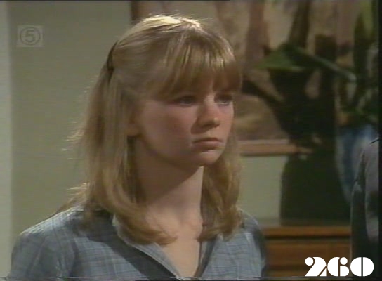 EPISODE 260Broadcast on Channel 5 Wednesday 29 April 1998 04:40 Competition intensifies between Meg and Officer Powell. A 16-year-old is inducted into Wentworth, where she is bewildered by her new surroundings. A murder is being plotted.CREDITSMeg ~ Elspeth BallantyneJudy ~ Betty Bobbitt Lizzie ~ Sheila Florance Erica ~ Patsy King Bea ~ Val Lehman Doreen ~ Colette Mann Officer Powell ~ Judith McGrath Kate ~ Olivia Hamnett Steve ~ Wayne Jarratt Sandy ~ Louise Le Nay Marie ~ Maggie Millar Janet ~ Kate Sheil Lori ~ Susannah Fowle Ian ~ Peter Curtin Wally ~ Alan Hopgood Bob ~ Anthony Hawkins Susie ~ Jacqui Gordon Officer Barry ~ Joy Westmore Mighty Mouse ~ Jentah Sobott Margo Gaffney ~ Jane Clifton Policewoman ~ Ginny Geraghty Meg seems not to have noticed that escaped prisoner Ronnie Kennedy is sitting behind her at the bar where she meets Bob | Ian tries to apologise to Meg, but it is really only an excuse to pressure her further: Meg repeats that she's a married woman, just as Bob arrives on cue to take her to lunch. Susie Driscoll is brought to Wentworth (along with another silent character called Mary Vaughan |