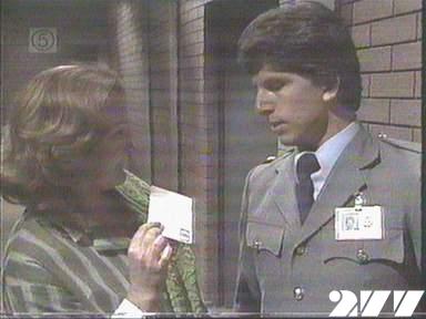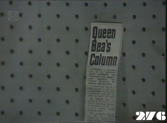 EPISODE 276Broadcast on Channel 5 Friday 22 May 1998 04:40 Jennifer Powell is taken to the bank robbers' hideout, and Erica Davidson takes a lenient view of Bea's birthday celebrations.Judy ~ Betty Bobbitt Lizzie ~ Sheila Florance Erica ~ Patsy King Bea ~ Val Lehman Doreen ~ Colette Mann Off. Powell ~ Judith McGrath Steve ~ Wayne Jarratt Susie ~ Jacqui Gordon Robert ~ Benjamin Mel ~ David Cameron Carol ~ Elisabeth Crosby Jennifer ~ Sarah Machin Wendy ~ Helen Noonan Doug ~ Martin Phelan Patrick ~ Rob Steele Joanne ~ Carole Yelland | Robert returns home without Jenny but Colleen isn't worried immediately. However amused Erica may be privately to find the telegram she ordered had been cancelled, she nevertheless tells Judy and Doreen they will lose buyup for the rest of the week as punishment for the stripper. Outside the Governor's office, Bea points out they have already had buyup for the week, and Erica must have seen the funny side. Colleen's husband Patrick decides to go out and look for Jenny when she still hasn't returned in time for tea. Jenny is taken to a hide-out by Mel and Doug, where Doug's girlfriend Carol is waiting. Jenny is locked in a room and Carol warns her not to anger Doug, as he has already killed a bank guard during the robbery. Doug is further annoyed by the fact that they only got a few thousand from the bank robbery as the shooting meant they weren't able to get into the vault. Colleen rings round a few of Jenny's friends to see if she is staying with them. Jenny tries to escape through a window and is stopped by Doug. Robert notices that a report of a bank robbery getaway car sounds just like the one abandoned in an alley nearby, but his parents are too distracted to take much notice. Patrick phones the police to report Jenny missing. Steve shows Bea her article in the Dispatch. Colleen goes to work and tells Erica that she is worried because Jenny did not come home. Doreen pins up Bea's column |