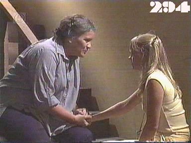 EPISODE 292Broadcast on Channel 5 Saturday 13 June 1998 Wally is concerned about the letter Judy has brought out for Hannah, and Meg is worried that Susie will blow her parole.![]() Meg ~ Elspeth Ballantyne Judy ~ Betty Bobbitt Lizzie ~ Sheila Florance Bea ~ Val Lehman Doreen ~ Colette Mann Off. Powell ~ Judith McGrath Steve ~ Wayne Jarratt Susie ~ Jacqui Gordon Joan ~ Maggie Kirkpatrick Chrissie ~ Amanda Muggleton Hannah ~ Julieanne Newbould Donna ~ Arkie Whiteley Brenda ~ Jan Friedl Wally ~ Alan Hopgood Mrs Beamish ~ Carmel Millhouse Duncan Campbell ~ Chris Orchard Det. Sgt. Melville ~ Kevin Colebrook Des Williams ~ Gary Down Thelma Turner ~ Babs Wheelton | Wally cheers Judy up by bringing some pots for her to sell in the halfway house shop. Chrissie tries to steal the money Lizzie hid in Doreen's shoe and gets the ink all over her hands and uniform. When Judy and Wally visit the hostel to see Susie, Mrs Beamish tells them that Susie has left. Susie turns up at Donna's asking to stay: for a moment Donna can't remember where she's met Susie before. Chrissie is caught trying to clean the ink off her hands and gets a bashing from Bea, Lil and Ronnie |