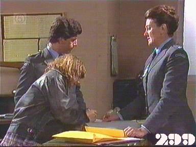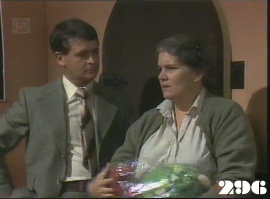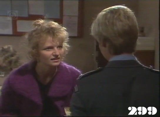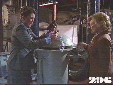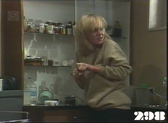 EPISODE 296Broadcast on Channel 5 Friday 19 June 1998 04:40 Susie is forced back into prostitution, and Chrissie learns that Joan has agreed to help Brenda in the custody case.![]() Meg ~ Elspeth Ballantyne Judy ~ Betty Bobbitt Lizzie ~ Sheila Florance Erica ~ Patsy King Bea ~ Val Lehman Doreen ~ Colette Mann Off. Powell ~ Judith McGrath Steve ~ Wayne Jarratt Susie ~ Jacqui Gordon Joan ~ Maggie Kirkpatrick Chrissie ~ Amanda Muggleton Hannah ~ Julieanne Newbould Donna ~ Arkie Whiteley Des ~ Gary Down Duncan ~ Chris Orchard Brenda ~ Jan Friedl Mr Douglas ~ Ian Smith Detective ~ Ian Sprake Det. Carter ~ Graham Dow Oddly, neither Joan nor Steve asks Donna to remove the gold chain around her neck at her induction | Bea and Doreen find Lizzie with a hangover: Lizzie has to admit to Bea where she got the drink from but can't remember whether or not she told Joan where the still was. Despite Chrissie's protests, Hannah asks Colleen to arrange a visit for her with the police to tell them all about the robbery. Donna calls Des to arrange a fix. Joan is made to look foolish when she takes Erica to the boiler room and shows her the still: it has been filled with rubbish and Joan gets wet through trying to find the real still pipes |