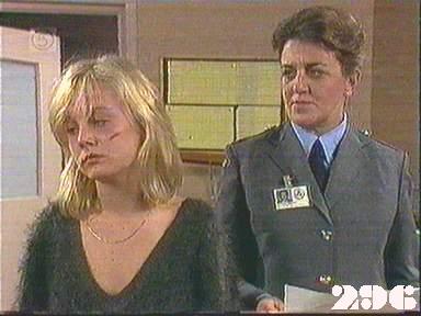 EPISODE 297Broadcast on Channel 5 Saturday 20 June 1998 04:40 Donna is suffering severe withdrawal symptoms from her heroin addiction, and the women learn of the horrific injuries inflicted on Chrissie by Joan.![]() Meg ~ Elspeth Ballantyne Judy ~ Betty Bobbitt Lizzie ~ Sheila Florance Erica ~ Patsy King Bea ~ Val Lehman Doreen ~ Colette Mann Off. Powell ~ Judith McGrath Steve ~ Wayne Jarratt Susie ~ Jacqui Gordon Joan ~ Maggie Kirkpatrick Chrissie ~ Amanda Muggleton Hannah ~ Julieanne Newbould Donna ~ Arkie Whiteley Maxine ~ Lisa Crittenden Des ~ Gary Down Det. Insp. Grace ~ Terry Gill Derek ~ William Zappa Mr Douglas ~ Ian Smith Officer Barry ~ Joy Westmore Det. Carter ~ Graham Dow Client ~ Peter Black Is this the first appearance of this extra In view of Sheila Florance's filmography, Lizzie's nickname for the new prisoner is amusing: she calles her "Mad Maxine" | Joan easily disarms Chrissie, knocks her to the floor and gives her a severe kicking |