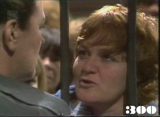 EPISODE 300Broadcast on Channel 5 Wednesday 24 June 1998 04:40 Hannah is offered a bribe to forego mentioning the name of Ludlow at her forthcoming hearing. Doreen is suspicious of Gloria, and finds a revolver in her belongings.![]() Meg ~ Elspeth Ballantyne Judy ~ Betty Bobbitt Lizzie ~ Sheila Florance Erica ~ Patsy King Bea ~ Val Lehman Doreen ~ Colette Mann Off. Powell ~ Judith McGrath Susie ~ Jacqui Gordon Joan ~ Maggie Kirkpatrick Chrissie ~ Amanda Muggleton Hannah ~ Julieanne Newbould Donna ~ Arkie Whiteley Gloria ~ Susanna Lopez Pamela Simpson ~ Lorraine West Det. Insp. Grace ~ Terry Gill Solicitor ~ Hardy Stow John Ludlow ~ Nick Keslinsky Barbara Fields ~ Susan Guerin Mrs Ludlow ~ Penelope Shelton Bea/Val Lehman appears twice in the credits, the first time in the place where Erica would usually be Joan refers to her last prison as Bogga Road, a real life prison in Queensland. | Hannah repeats Maxine's story to Erica and tells her that Joan herself has confirmed it is true. Erica asks for Colleen's opinion and she says she doubts Joan would admit to anything like that, so Erica says that she will make private enquiries with the Governor in Queensland. Judy tells Susie that Donna got probation and will live in halfway house. Susie is not pleased to see Donna again and grudgingly shows her to the room they are to share. Inspector Grace shocks Judy by admitting he only helped Donna to set her up deliberately as bait for the big fish. Consequently, the police will be watching the halfway house. Donna blames Des for everything and tells Susie she didn't want to get her in trouble: Susie looks sceptical. Hannah repeats Maxine's story to Bea. Joan denies the story is true when Erica challenges her, but does look a little worried when she finds out Erica is planning to phone her old boss. Joan wants to speak to Hannah and stops her as the women pass by in the corridor, pulling her to the other side of a security gate. Bea reaches through and grabs Joan's arm to show her they won't let her molest Hannah again. |