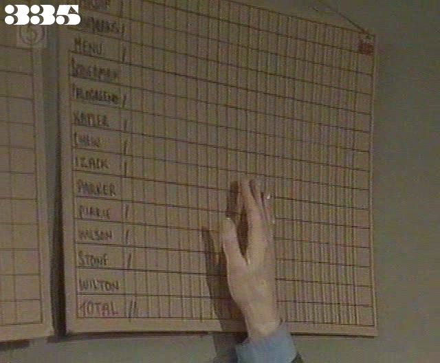 EPISODE 335Broadcast on Channel 5 Wednesday 12 August 1998 04:40 There is a hint of discomfort among the officers with Meg at the centre of it. Judy's sister arrives from America.CREDITSMeg ~ Elspeth BallantyneJudy ~ Betty Bobbitt Lizzie ~ Sheila Florance Erica ~ Patsy King Joan ~ Maggie Kirkpatrick Bea ~ Val Lehman Off. Powell ~ Judith McGrath Chrissie ~ Amanda Muggleton Margo ~ Jane Clifton Paddy ~ Anna Hruby Maxine ~ Lisa Crittenden Jean ~ Carole Skinner Hazel ~ Belinda Davey Det. Sgt. Tanner ~ Peter Paulsen Frances ~ Barbara Ramsay Detective Constable ~ Jeffrey Hodgson Ellen ~ Dawn Klingberg Nola's mugshot replaces Judy's in the opening credits. Perhaps they belatedly realised that Judy stopped being a prisoner well before her mugshot was included! | Chrissie gets three months and Margo claims the credit for making Meg give evidence. Colleen dismisses Meg's assumption that Joan will now be investigated: he was only giving Bea and Chrissie the benefit of the doubt and although he will be maing a report, it isn't likely to implicate Joan. Joan is champing at the bit to have more rules enforced and gives as an example the "no communication" rule, where officers only speak to prisoners to give orders. Colleen picks up on Joan's casual remark "if I were Deputy Governor" and reminds her bluntly that she isn't, and so Joan will just have to take orders from her. Margo doesn't believe Jean's claim that it is her first time inside. Erica tells the officers that a new points system will be introduced as an incentive for good behaviour: each woman will get one point a day for good behaviour, but will lose five points if put on a charge. When the women earn 1,000 points, for instance, they could have a television: Erica claims the whole prison could earn this many points in under three weeks (which implies that there are round about 46 prisoners in total ?!). Joan suggests the officers could take off one point for minor infringements of rules. Colleen is keen to rub Meg's nose in it for siding with the women, so picks up Joan's suggestion that the no communication rule should be enforced. Erica is in "tough" mode, so she agrees to the suggestion. When the women hear about the scheme, they are stolidly unimpressed, even when Erica offers to start them off at 200 points. As they aren't suitably grateful, she withdraws the offer and tells them they will start at zero. Bea cynically comments that this shows the whole point of the scheme is to make a gesture of giving them something only so there is something to be taken away again. Colleen and Meg eat lunch in silence, until Colleen tries to break the ice and Meg responds by listing the subjects they can no longer talk about, sarcastically suggesting that Colleen talks about her family. Colleen says that all isn't rosy on that front either, and the reason she's keen to avoid trouble is thats he's worried about the financial implications if Patrick loses his job, as seems likely to happen. Bea tries to get Nola to talk about herself, but Nola says she only wants to be left alone until she's released. Erica senses Meg's contempt for the points scheme when she asks her to draw up the charts. Bea hints to Meg that it was Margo who threw the Molotov cocktail and that the police know it. When Erica is informed, she refuses to re-open the case. Meg grudgingly explains the points charts to the women and tells them there's no point changing it as a duplicate count will be kept in the Governor's office. Bea makes a mildly critical remark and Joan takes a point off. Jean is a bit worried when Margo remarks that her fingerprints will be put on the police computer and when she asks whether it covers other states, Margo expansively claims it covers "the rest of the world" (as if!). Meg tries to convince Erica that the women's knowledge of a coverup and Margo getting away with starting the fire will not do any good for their credibility. Erica still refuses to have the investigation re-opened and suggests they will just have to deal with it in their own way. Consequently. Margo is taken out of the dining room in front of the other women ~ ~ ~ When Meg and Colleen are discussing involvement with prisoners, there are name checks for Susie Driscoll, Carol Lewis, Hannah Simpson, Sandy Edwards and Myra Desmond. The names on the points charts on the rec room noticeboard bear little resemblance to the known inmates of H block. Although the lower chart |