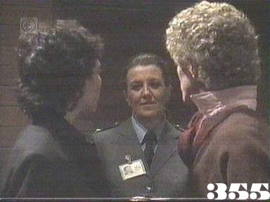 EPISODE 355Broadcast on Channel 5 Wednesday 09 September 1998 04:40 Alan is unable to conceal his identity at Wentworth, and Lindy is involved in a police set-up.![]() Meg ~ Elspeth Ballantyne Judy ~ Betty Bobbitt Lizzie ~ Sheila Florance Erica ~ Patsy King Joan ~ Maggie Kirkpatrick Bea ~ Val Lehman Colleen ~ Judith McGrath Maxine ~ Lisa Crittenden Nola ~ Carole Skinner Helen ~ Caroline Gillmer Lindy ~ Vivien McGrath Lainie ~ Marina Finlay Ellen ~ Michael Cormick Tony ~ Tony Alvarez Dianne ~ Rhonda Cressey Mrs Collins ~ Babs Wheelton Trevor ~ Darius Perkins Constable Granger ~ Peter Black Detective Skinner ~ Rob Hewitt Patron ~ Ilya Dyukic Junior Officer Riley ~ Kathy Gordon It is unusual for writer credits to be the same for two episodes running, so either this or the next episode may be wrong? The character name "Dianne" is misspelt "Lianne" in the credits for this episode. | Lindy pretends the call was from an old customer and tells Judy she wants locks on her windows for protection. Judy picks up on her remark that "some guy" raped her and asks if she's saying it wasn't Trevor after all. Nola isn't worried that the Department's sudden rush of generosity will cramp her style and claims to be able to offer all kinds of special items that they never could - like, say, a double bed for "Ellen" and Lainie. Joan sees "Ellen" and Lainie in their cell about to kiss each other |