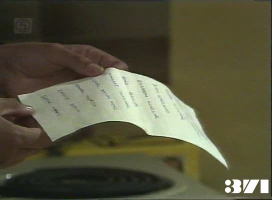 Someone in the props department had great fun in this episode. Not only did they handwrite a list