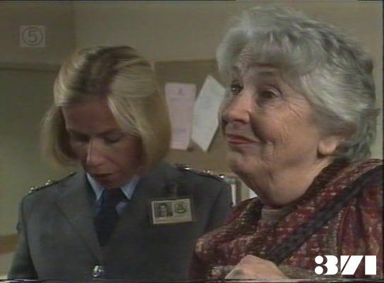 EPISODE 375Broadcast on Channel 5 Wednesday 07 October 1998 04:40 Joan's life is endangered when a hysterical murderess turns on her. Brandy panics when she realises the consequences of her behaviour.![]() Meg ~ Elspeth Ballantyne Judy ~ Betty Bobbitt Lizzie ~ Sheila Florance Joan ~ Maggie Kirkpatrick Bea ~ Val Lehman Colleen ~ Judith McGrath Ann ~ Gerda Nicolson Maxine ~ Lisa Crittenden Wally ~ Alan Hopgood Mikki ~ Christine Keogh Maggie May ~ Davina Whitehouse Lizta ~ Christine Totos Laura/Brandy ~ Roslyn Gentle Carol ~ Merrin Canning Des ~ Peter Ford Jilly ~ Natasha Love Mr Douglas ~ Ian Smith Manoli ~ George Harlem Sergeant ~ Paul Karo Constable ~ John Ramsay Neighbour ~ Hannah Govan Greek Youth ~ Con Mathios Policewoman ~ Sue O'Neill The silent uncredited officer Mrs O'Shea is referred to as "Helen". | Joan offers to go for help, but Carol tells her not to bother as "the bastard's dead". She says Joan should stay anyway as she hasn't decided yet what to do. Joan is missed at the prison. Jilly comes inside the house after Joan and is grabbed and held hostage by her mother. Joan and Carol have a tense and cryptic conversation over Jilly's head as Joan manages to convince Carol not to kill herself and her daughter. Bea is annoyed with Lizzie for not being straight with her and suggests her loyalties were really with Maggie all along. Lizzie replies that she was worried Bea might crack up completely so soon after the business with Zara. Bea warns Maggie she's in deep trouble, so Maggie tries to pretend she gave her lawyer a letter to be opened in case anything should happen to her inside. Joan is still being held hostage at the Coulsons' when darkness falls. Litza and Mikki argue about Manoli's behaviour then turn to the subject of Cliff. Just as Carol is changing her mind and deciding again to kill Jilly |