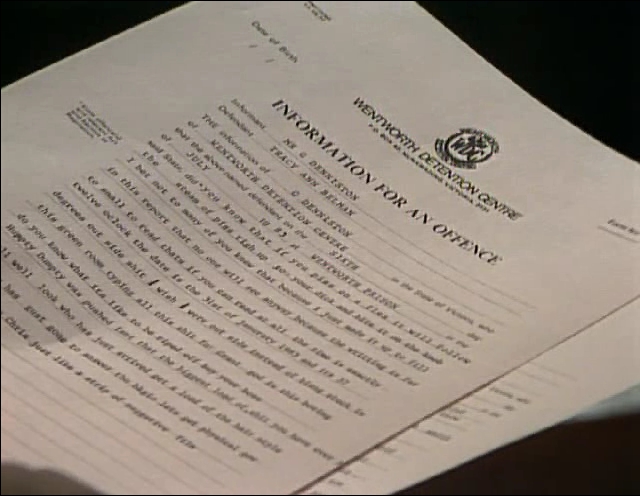 EPISODE 373Broadcast on Channel 5 Sunday 04 October 1998 04:40 Litza's presence at Driscoll House creates hostility. A meek and mild librarian undergoes a shocking personality change to get herself arrested.![]() Meg ~ Elspeth Ballantyne Judy ~ Betty Bobbitt Lizzie ~ Sheila Florance Joan ~ Maggie Kirkpatrick Bea ~ Val Lehman Colleen ~ Judith McGrath Ann ~ Gerda Nicolson Maxine ~ Lisa Crittenden Phyllis ~ Reylene Pearce Wally ~ Alan Hopgood Mikki ~ Christine Keogh Maggie May ~ Davina Whitehouse Mrs Daniels ~ Marie Redshaw Lizta ~ Christine Totos Cliff ~ Robbie McGregor Laura/Brandy ~ Roslyn Gentle Carol ~ Merrin Canning Des ~ Peter Ford Jilly ~ Natasha Love Mr Douglas ~ Ian Smith Ken Harvey ~ Paul Glen Mrs Landon ~ Eve Godley Bruce Fisher ~ David Allshorn Joe Landis ~ Shane Bourne Policeman ~ Peter Black Mrs Toomey ~ Pam Murphy Rob Tennant ~ Don Bridges Frances ~ Wanda Davidson Mr Perkins ~ Earl Francis OTHER CHARACTERSMrs Stone - interviewing CarolMaxine's mugshot replaces Tracey Belman. | Pauline has second thoughts and phones Maxine to warn her the police are coming. Maxine steals a customer's car from the garage forecourt to make her getaway. Ann warns Maggie not to play her for a fool and assume she will get away with anything because of her age. Maggie is warned she will be sent to solitary next time. Lizzie listens at the door of the surgery and overhears Maggie blaming her for the cough mixture incident: she lets Maggie know that she heard every word she said. Maxine calls on Spud's mum and is chased by the police, but runs out of petrol and is arrested. Bea reads out the letter supporting Maggie's claim to be allowed to go back to America: Maggie says she'll get it out to the press through her solicitor. Ann talks to Maxine when she returns to Wentworth. Joan's neighbour Des Coulson complains about Major "crapping" on his lawn (the dog, not Joan's father). Joan refuses to chain Major up but is taken aback when he threatens to shoot the dog if he catches him in his garden again. Lizzie turns against Maggie and starts to contradict everything she says. Maxine tells Bea and Lizzie to stop criticising Maggie as she did what she had to do. Joan talks to Jilly the little girl next door and her mother Carol, and tells her about the threats her husband made. When Carol goes indoors, she walks straight into a row with her husband, in which he blames her for failing to get a job. However, as we see when Carol goes for an interview, she is turned down on the grounds that she is too "nervy". Ann calls Ted Douglas for advice about the press calls for Maggie's extradition: he advises her to ocntinue to make no comment as there is an intention on the Department's part to resist the US in its attempt to extradite Maggie. Meg goes to the library, where one of the assistants is pestered by a collection agent for $1,000 of credit.. Later, we see the assistant walking through a shopping mall where she is irresistably drawn to a glittery red dress in a shop window |