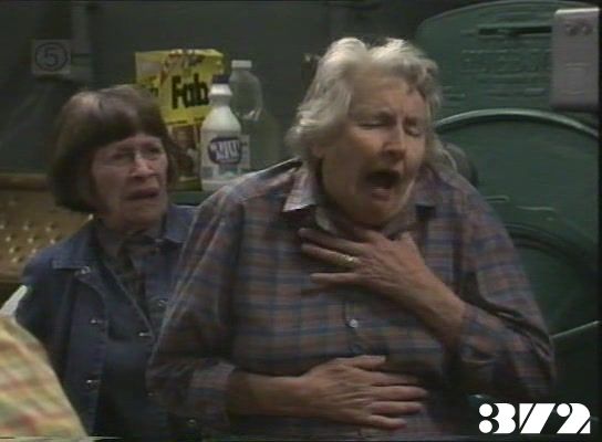 EPISODE 372Broadcast on Channel 5 Saturday 03 October 1998 04:40 Maggie tries to gain popularity by making up a story, with unforeseen consequences. Roger's guilt gets the better of him, and Pauline tries to incriminate Maxine.![]() Meg ~ Elspeth Ballantyne Judy ~ Betty Bobbitt Lizzie ~ Sheila Florance Joan ~ Maggie Kirkpatrick Bea ~ Val Lehman Colleen ~ Judith McGrath Ann ~ Gerda Nicolson Maxine ~ Lisa Crittenden Phyllis ~ Reylene Pearce Tracey ~ Alyson Best Wally ~ Alan Hopgood Maggie May Kennedy ~ Davina Whitehouse Pauline ~ Linden Wilkinson Roger ~ Bruce Kilpatrick Spud ~ Robert Forza Mrs Daniels ~ Marie Redshaw Mikki Wallace ~ Christine Keogh Mary Adler ~ Bev Hay Lizta Stathopolous ~ Christine Totos Sister Kelly ~ Liddy Holloway Det. Insp. Grady ~ David Hursthouse Mr Grimmons ~ Charles Gilroy Maggie's "diary" entry This must be a serious contender for the top five worst ever episodes: not only two of the worst characters (Maggie May and Litza) in full flood but also some poor writing for the unutterably tedious Mikki Wallace and her inadequacies as a human being. | Roger runs into his boss near the alley and explains he got the wrong day for his dentist's appointment. Lizzie and Maggie catch up by reminiscing about the old times. Maggie admits to Lizzie she suspected she was carrying drugs, but the pay was so good she didn't care: Lizzie warns her to be careful of Bea. Maxine and Spud split the money. Colleen wonders if recent events might have made Ann a bit more wary about trusting Joan. Lizzie introduces Maggie to the other women in the laundry - Bea isn't impressed, but the others seem interested in Maggie's tall tales and agree that she is right to fight for extradition to be tried in America. Tracey wonders if she killed her husband for nothing if her paralysis had only been psychological. Maxine gives her share to Pauline. Maggie spins another yarn for the women, but Bea cuts her off until she gets onto the subject of drug running. Lizzie tells Bea that Maggie claims she was set up. Roger tells Pauline the man he was going to rob was mugged by someone else, and she shows him the money Maxine has given her. He is worried that he was seen by his boss near the alley where the robbery took place. Colleen finds Maggie writing her diary: Maggie tries to bribe Colleen with a bottle of booze. Meg persuades Wally to help with the educational programme by giving pottery classes for the women. Tracey goes to court and apologises to Joan, telling her she's grateful to her for her help. The police interview Roger: he repeats his alibi about the dentist's appointment, but finds that the police already know of his whereabouts from Mr Grimmons. Lizta returns to the halfway house. Maggie fakes a coughing fit |
