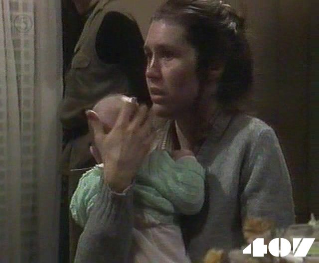 EPISODE 407Broadcast on Channel 5 Saturday 21 November 1998 04:40 Lizzie refuses to see her son and Petra receives the results of her appeal.CREDITSMeg ~ Elspeth BallantyneJudy ~ Betty Bobbitt Lizzie ~ Sheila Florance Joan ~ Maggie Kirkpatrick Colleen ~ Judith McGrath Ann ~ Gerda Nicolson Wally ~ Alan Hopgood Pixie ~ Judy McBurney Petra ~ Penny Maegraith Scott ~ Tim Elston Sonia ~ Tina Bursill Minnie ~ Wendy Playfair Cass ~ Babs McMillan Phyllis ~ Reylene Pearce Bobbie ~ Maxine Klibingaitis Officer Barry ~ Joy Westmore Alice Dodds ~ Julia Blake Daphne Brookes ~ Libby Gore Clare Adams ~ Lisa Armytage Wayne Adams ~ David Swan Terence Makin ~ John Shaw Billie Dorsey ~ Kristopher Steele Sergeant ~ John Ramsay Policeman ~ Robert McClelland | Joyce finds Bobbie, still under the influence of drink, and Joan finds Sonia drunk in the rec room. Joan gets nowhere asking the women where the booze came from - not that she doesn't already know. Clare Adams and her baby come to Driscoll to escape from her husband. Joan tells Sonia she'll get rid of the booze if she confesses to making it all by herself. Alice tries to reason with Clare's drunken husband, who comes to Driscoll armed with a rifle: the police are called and Alice is shot in the arm in the struggle. Minnie is declared top dog, and decides to set up in competition to Sonia selling booze. Alice was only grazed by the bullet and is well enough to return to work. Wally tells Alice he is leaving, as she seems to have settled in and become accepted by the women. Sonia admits with a straight face that she made the booze all by herself. Ann clearly does not believe her but gives Sonia and Bobbie extra cleaning duties. Ann proposes an amnesty to allow the women to hand in any more booze then to hold a full cell search 24 hours later. Scott tells Judy he has been called as a witness against her. Joan lets Ann know that she thinks the amnesty is a joke. Minnie tells the women she's going to be getting some real booze into Wentworth. Scott and Petra are called to the Governor's office: a mistrial has been declared in Petra's case and she is released. Minnie phones up her solicitor to get him to to visit with a few samples of her old "pick-me-up". Petra says goodbye to the women and says she has Bea to thank for it. Sonia tells Phyllis to start collecting for the numbers game but no-one is buying. Minnie leaps in and offers to pay out double the prize money Sonia is offerring. Sonia explains to Bobbie that she needs the tape of Joan as "insurance". Terence brings in some miniatures of whisky for Minnie during an unsupervised visit. Ann tells Meg that Wentworth is to be connected to the Prison Broadcasting Service, and that a new officer is to be transferred from Woodridge. Lizzie gets a hand delivered message from Arthur. Sonia buys Phyllis' old tape recorder and cassette tapes while they are both on cleaning duties. Bobbie tapes an incriminating conversation between Sonia and Joan, as she has her headphones on and pretends to be listening to music. After a hint from Sonia, Joan catches Minnie being passed booze by Billy and takes her to the Governor to undermine Minnie in Ann's eyes. Sonia tells Joan that Minnie has already been handing out booze as prizes and must have wanted to get caught to put Joan off the scent and make Joan think she had stopped all the booze coming in. She demands that Joan brings in booze for her to use to win back favour. To help Joan make up her mind, she plays back a bit of the tape for her. |