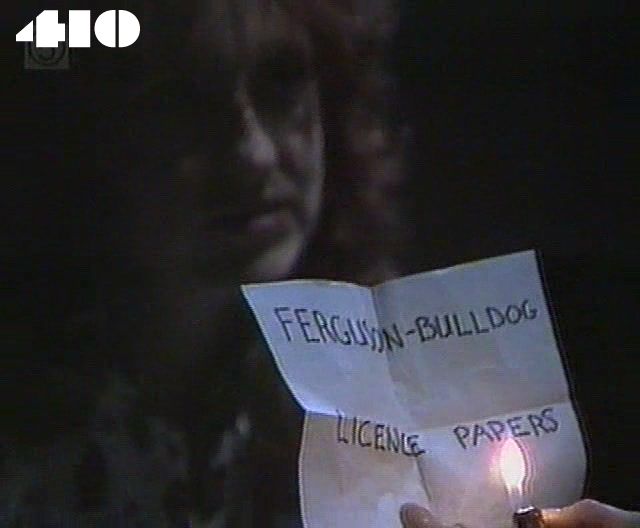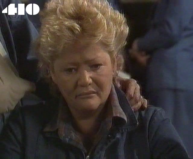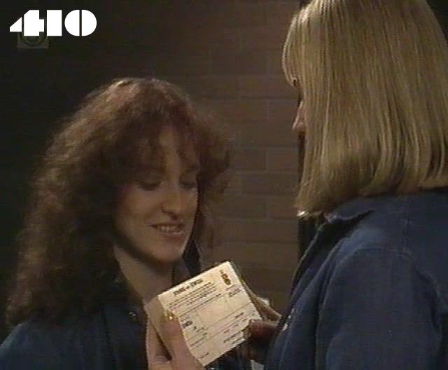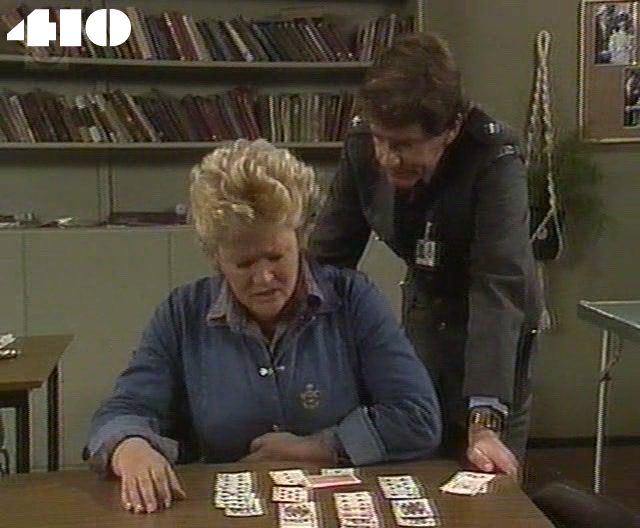 EPISODE 410Broadcast on Channel 5 Wednesday 25 November 1998 04:40 Paul Reynolds is charged with producing pornography. Arthur's family decide that they would like Lizzie to live with them permanently.CREDITSMeg ~ Elspeth BallantyneJudy ~ Betty Bobbitt Lizzie ~ Sheila Florance Joan ~ Maggie Kirkpatrick Colleen ~ Judith McGrath Ann ~ Gerda Nicolson Wally ~ Alan Hopgood Pixie ~ Judy McBurney Sonia ~ Tina Bursill Cass ~ Babs McMillan Minnie ~ Wendy Playfair Bobbie ~ Maxine Klibingaitis Scott ~ Tim Elston Paul Reynolds ~ Paul Newman Brenda ~ Carmen Warrington David ~ David Waters Charles Harnsworth ~ Tom Lake Arthur Charlton ~ Roy Edmunds Don Baxter ~ Alan Lee Officer Barry ~ Joy Westmore Det Sgt Brooks ~ Ian Cuming Mary Adler ~ Bev Hay Prosecuting Barrister ~ Clive Hearn Phillip Goldsmith ~ David Kendall Shirley Mills ~ Lyn Semmler Police Sergeant ~ Peter Black Judge ~ Arthur Barradell-Smith Sen Det Clark ~ Ian Mumby Jun. Off. Riley ~ Kathy Gordon Intruder ~ Trevor Kilgour Male Customer ~ Steve Lane Stenographer ~ Joan Fry Driver ~ Frank Sheeran As if being bumped off weren't bad enough, Mary Adler's name is misspelt "Alder" for her last credit. | Minnie tells Ann about the tape and that Sonia has another copy of it. Lizzie is disgusted when Minnie tells the women about this later, as she thinks it amounts to lagging. Judy defends Minnie and says that anything is justified if it will put a stop to Sonia and Joan. When Sonia is questioned she demands immunity from prosecution and maximum remission before she will hand the tape over. Minnie herself appeals to Lizzie while she is in her cell rinsing her knickers and convinces her that Bea would have done the same. Sonia tells Brenda to recover the tape. Lizzie gets a censored letter from Bea. The drug drop is confirmed by a coded message on the prison radio, so Sonia and Brenda pack up the money along with a code-name for Joan ("Bulldog"!!) |