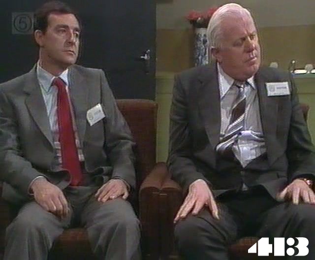EPISODE 414Broadcast on Channel 5 Tuesday 01 December 1998 04:40 Randi disappears, but David knows her whereabouts. Joan is horrified when she realises what she has done during an LSD trip.![]() Meg ~ Elspeth Ballantyne Judy ~ Betty Bobbitt Lizzie ~ Sheila Florance Joan ~ Maggie Kirkpatrick Colleen ~ Judith McGrath Ann ~ Gerda Nicolson Wally ~ Alan Hopgood Pixie ~ Judy McBurney Sonia ~ Tina Bursill Cass ~ Babs McMillan Minnie ~ Wendy Playfair Bobbie ~ Maxine Klibingaitis Scott ~ Tim Elston Brenda ~ Carmen Warrington David ~ David Waters Phyllis ~ Reylene Pearce Paul Reynolds ~ Paul Newman Samantha ~ Dina Mann Randi ~ Zoe Bertram Belinda ~ Jane Turner Det Insp Bates ~ Ian Walker Det Insp Duggan ~ Rob Harrison Kylie Dence ~ Sally-Ann Creswick Doctor Taylor ~ Paul Wentford The credits include "thanks to the Malvern and Box Hill police stations". This unexplained character | Colleen asks Meg to call on Joan: she finds her in a state of shock |