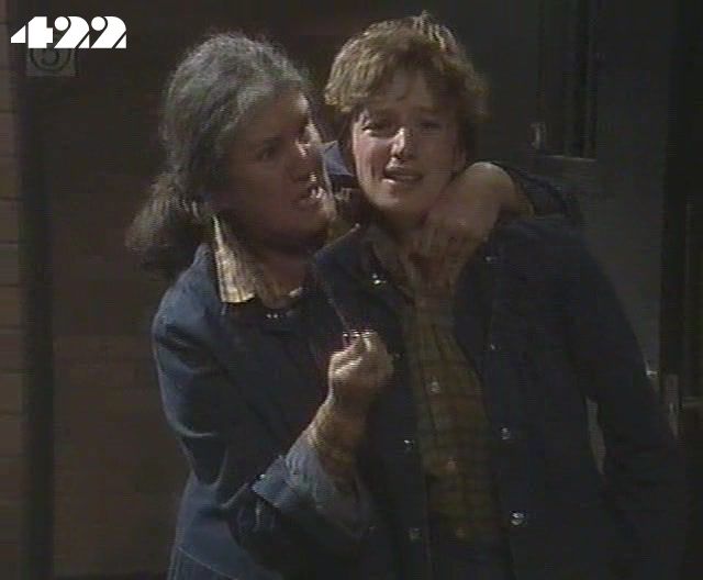 EPISODE 422Broadcast on Channel 5 Saturday 12 December 1998 04:40 Joan finally triumphs over Colleen. Someone wants Paul Reynolds out of the way, and Judy is accused of molesting Belinda.CREDITSMeg ~ Elspeth BallantyneJudy ~ Betty Bobbitt Joan ~ Maggie Kirkpatrick Colleen ~ Judith McGrath Ann ~ Gerda Nicolson Pixie ~ Judy McBurney Sonia ~ Tina Bursill Cass ~ Babs McMillan Minnie ~ Wendy Playfair Bobbie ~ Maxine Klibingaitis Belinda ~ Jane Turner Helen ~ Caroline Gillmer Rick Manning ~ Andy Anderson Charles Harnsworth ~ Tom Lake Off. Radcliffe ~ Marion Dimmick Off. Barfield ~ Delva Hunter Reb ~ Janet Andrewartha Mike Slater ~ Ross Vernon Mr Schumann ~ Mark Zandle Miss Shrewsbury ~ Lorelei Tait Ralph Cranton ~ Mark Morrisey Miranda Denis ~ Christine Ashman Mrs Burton ~ Marcia McArthur Fred McDonald ~ Marcus Eyre Detective ~ Gus Cornelissen Policeman ~ Adrian Benson Policewoman ~ Fran Mannix Waiter ~ Andrew Blazsanyik Fred's Driver ~ Colin McDonald Reb Kean is actually credited as "Rebbecca". I have assumed that Mike "Slator", Miss "Shrewbury" played by "Lorelie" Tait and Mrs "Button" are also misspellings. | Minnie reassures Cass when she panics at the sight of Rick. Inspector Thorne questions Colleen: when Joan finds out she stays on instead of going home. Sonia hints that Judy stabbed her in the hearing of the other women. Joan tells Inspector Thorne she didn't see the accident and that the man was already dead when she arrived on the scene. Colleen is taken to the station to make a statement |