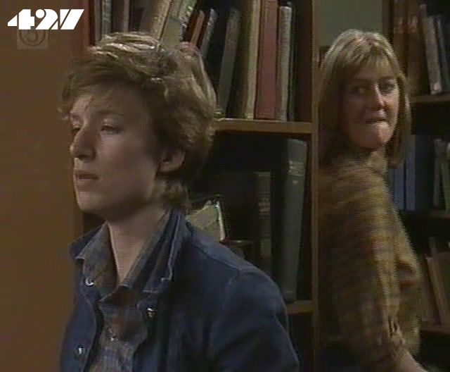 EPISODE 427Broadcast on Channel 5 Saturday 19 December 1998 04:40 Sonia realises that there is only one way to stop Belinda. The new Joan takes everyone by surprise. Belinda at last gets a chance to fulfil her ambition.CREDITSMeg ~ Elspeth BallantyneJudy ~ Betty Bobbitt Erica ~ Patsy King Joan ~ Maggie Kirkpatrick Colleen ~ Judith McGrath Ann ~ Gerda Nicolson Wally ~ Alan Hopgood Sonia ~ Tina Bursill Minnie ~ Wendy Playfair Cass ~ Babs McMillan Pixie ~ Judy McBurney Bobbie ~ Maxine Klibingaitis Helen ~ Caroline Gillmer Belinda ~ Jane Turner Reb ~ Janet Andrewartha Phyllis ~ Reylene Pearce Rick ~ Andy Anderson Stanley ~ Brian James Major Ferguson ~ Carl Bleazby Sergeant Mott ~ Peter Black Ralph Cranton ~ Mark Morrisey Mr Schumann ~ Mark Zandle Policewoman ~ Sue O'Neill Frances ~ Wanda Davidson Officer Riley ~ Kathy Gordon Constable Sparks ~ Colin Sparks | The Major tells the police the shooting was accidental, and implies that he was holding it when it went off. The police set off in pursuit of Reb and Kevin. Judy is surprised at how keen Belinda suddenly is to get started on her Braille lesson, but this is mainly because it gives her another opportunity to visit the library. Sonia asks Phyllis to recover the spanner before Belinda finds it, but she has already found it where Minnie taped it under a table and she moves it to the top of a bookcase. Joan is forced to tell the Major that she's had to resign when he tells her he lied about Gary's shooting to save her career. Sonia complains she feels ill, but is only given some pills and locked in with Belinda. Unfortunately one of the tablets is a sleeping pill and Sonia soon starts to nod off even though she is standing upright. Belinda attacks her and Sonia calls for help. Rick puts Sonia in solitary for the night, telling her he doesn't believe her story, as he knew her husband Eddie and the effect she had on him. Bobbie comes to breakfast with multicoloured hair and has to wash it out. Joan tells the Major she's going to see someone to sort out her future. Fran tells the women she's heard on her transistor that Reb has been caught. Colleen tells Rick that Reb is coming back to Wentworth and hopes that Joan won't insist on working out on her resignation. However, Joan is paying a visit to Ann to ask her to withdraw her resignation: Ann phones the prison and talks to Erica, passing on Joan's assurances that her attitude has changed and pointing out the strain Joan has been under. Reb is brought back and has to be man-handled into solitary. Erica tells Colleen she'll be backing whatever decision the Governor and Department make about Joan's future. The women are busy speculating what job Joan would be better suited to when they are astonished to see her back at work, and even more so by her assurances that she will make every effort to change her ways. Sonia tries to recruit Reb while they are both in solitary but is rebuffed. Joan is listening, but for once she isn't gloating. Ann worried she's made a dreadful mistake especially as she won't have to face the consequences: she is determined not to return to Wentworth. Ralph takes Pixie for a picnic and is horrified by what she tells him of her life inside: he promises to get her out. Cass amazes the women by saying she thinks they should give the women a chance. Joan tells Sonia that she knows she's been hard on her in the past, but she won't be involved in any more rackets and will now be doing her job completely by the book. Minnie warns Judy that the spanner has gone missing. Stan takes Belinda inside for her lesson. Ralph takes Pixie for a drive after work and convinces her Colleen has bound her over into his care, and produces a wedding card |