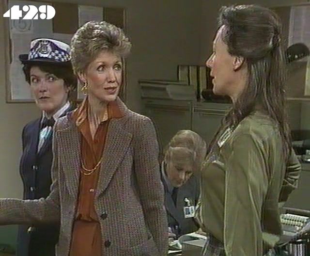EPISODE 428Broadcast on Channel 5 Sunday 20 December 1998 04:40 Erica is made the new Head of Department. Reb gets even with Sam (? Stan?), and a life hangs in the balance.CREDITSMeg ~ Elspeth BallantyneJudy ~ Betty Bobbitt Erica ~ Patsy King Joan ~ Maggie Kirkpatrick Colleen ~ Judith McGrath Ann ~ Gerda Nicolson Wally ~ Alan Hopgood Sonia ~ Tina Bursill Cass ~ Babs McMillan Minnie ~ Wendy Playfair Bobbie ~ Maxine Klibingaitis Belinda ~ Jane Turner Helen ~ Caroline Gillmer Phyllis ~ Reylene Pearce Reb ~ Janet Andrewartha Mo ~ Bronwyn Gibbs Rick ~ Andy Anderson Stanley ~ Brian James Major Ferguson ~ Carl Bleazby Paul Reynolds ~ Paul Newman Hugh Bennett ~ Steve Cummins June Bennett ~ Sai McKenna Officer Radcliffe ~ Marion Dimmick Sister Kelly ~ Liddy Holloway Mr Schumann ~ Mark Zandle Det. Sgt. Rouse ~ Paul Karo Gate Guard Trevor ~ Brad Lindsay Pregnant Prisoner ~ Estee Naylor One of the extras (I think it is "Jacko") can be seen with a distinctly "Bea Smith" hairdo. | Belinda cannot land the blow to finish Sonia off |