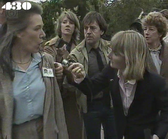 The reporters who approach Ann as she leaves Wentworth seem to come last in the cast list, in a block with the Gate Guard and the "TV reporter" (on the right of this shot