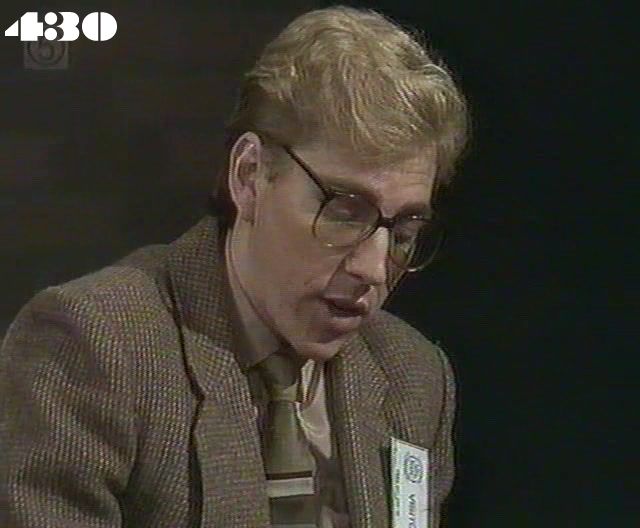 It's already hard enough to distinguish the actors playing the reporters in this episode without a crucial mistake that makes it appear that there are not enough men's names for the actors who have dialogue. However, two of the actors also appear as reporters in (453) and from his ludicrously large speca alone it's obvious that "Jan Gilbert" is a mistake for Ian Gilbert.
