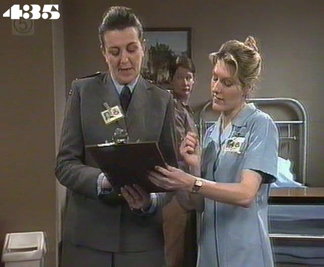 EPISODE 435Broadcast on Channel 5 Wednesday 30 December 1998 04:40 While Reb gives the police a run for their money, Sonia finds an ally against the Freak.CREDITSMeg ~ Elspeth BallantyneJudy ~ Betty Bobbitt Joan ~ Maggie Kirkpatrick Colleen ~ Judith McGrath Ann ~ Gerda Nicolson Sonia ~ Tina Bursill Minnie ~ Wendy Playfair Cass ~ Babs McMillan Bobbie ~ Maxine Klibingaitis Helen ~ Caroline Gillmer Reb ~ Janet Andrewartha Myra ~ Anne Phelan Phyllis ~ Reylene Pearce Ruth ~ Mary Murphy Rick ~ Andy Anderson Off. Barry ~ Joy Westmore Doreen ~ Colette Mann Kevin Stansfield ~ Tiriel Mora Cheryl Harris ~ Kellie Broomhall Sister Lindsay ~ Heather Brookman Motorcyclist ~ Peter Kurg Male Passerby ~ Charles Dance Patrolcar Policeman 1 ~ Alan Cruse Detective ~ Paul Mellor Customer ~ William A Blake Patrolcar Policeman 2 ~ John Klingberg Doreen's list of possible Wentworth re-entry tactics | Judy tries to wake Meg. Joan returns to work and is warned not to take revenge for her father's kidnapping. Judy and Cass |