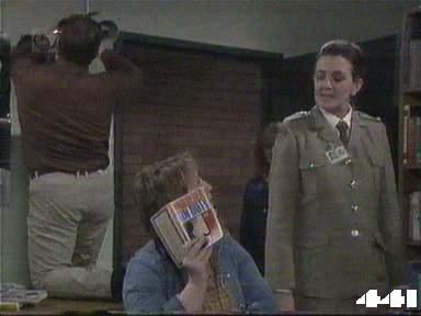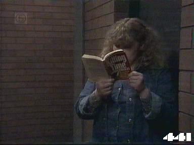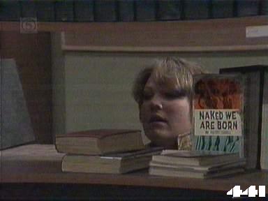 When Doreen and Helen are shown pretending to read while waiting for Bert in the library, someone has chosen their books with care: Doreen's is "Killing Time"