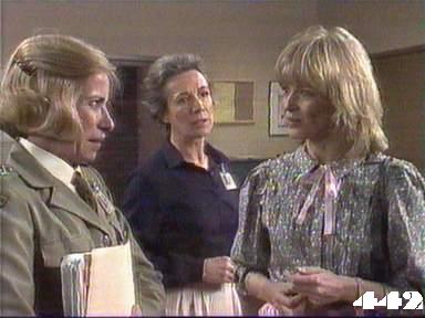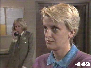 EPISODE 442Broadcast on Channel 5 Saturday 09 January 1998 04:40 The Fellowes gang chew over what to do about Sonia and Bobbie. Myra nurses her anger with Gloria. Margo returns to Wentworth all ears.CREDITSMeg ~ Elspeth BallantyneJudy ~ Betty Bobbitt Joan ~ Maggie Kirkpatrick Colleen ~ Judith McGrath Ann ~ Gerda Nicolson Rick ~ Andy Anderson Reb ~ Janet Andrewartha Sonia ~ Tina Bursill Bobbie ~ Maxine Klibingaitis Doreen ~ Colette Mann Pixie ~ Judy McBurney Cass ~ Babs McMillan Phyllis ~ Reylene Pearce Myra ~ Anne Phelan Margo ~ Jane Clifton Kay Desmond ~ Sally-Anne Bourne Alan Desmond ~ Peter Craig Kurt Renner ~ Ray Meagher Keith Scott ~ Jonathon Sweet Det. Rouse ~ Paul Karo Uniformed Constable 1 ~ Greg Smith Uniformed Constable 2 ~ Wayne Hirst Police Constable ~ Fergus Anderson Customer ~ Laine Lamont Truck Driver ~ Chris Anderson Pantech Man ~ Mark Bradley The credit for Chris Anderson is not for a new character: he was the driver of the police car in the previous episode and has swapped to driving the truck Cass appears in place of Bobbie in the opening mugshot sequence. | No-one is keen on the idea of Margo being transferred to Wentworth and Cass tells them Margo was dealing drugs to people of Bobbie's age in Barnhurst. Gloria tells them all that Bobbie's cell has been cleared out and they realise that Bobbie has gone along with Sonia. Margo is brought to Wentworth |