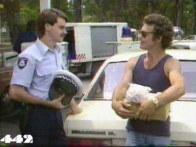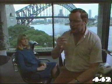 Every time "Prisoner" took an outing to Sydney, they made sure to get a shot of one of the famous landmarks in as soon as possible. Here it is the turn of the Harbour Bridge which can be seen from Kurt Renner's panoramic office view