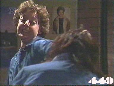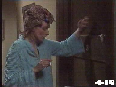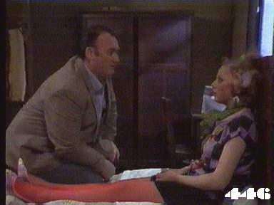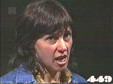 EPISODE 449Broadcast on Channel 5 Tuesday 19 January 1999 04:40 Cass gives Phyllis, Frances and Alice a taste of their own medicine, whilst Pixie is relieved when the police drop the charges against her.![]() Meg ~ Elspeth Ballantyne Judy ~ Betty Bobbitt Joan ~ Maggie Kirkpatrick Colleen ~ Judith McGrath Ann ~ Gerda Nicolson Myra ~ Anne Phelan Rick ~ Andy Anderson Reb ~ Janet Andrewartha Margo ~ Jane Clifton Bobbie ~ Maxine Klibingaitis Pixie ~ Judy McBurney Cass ~ Babs McMillan Phyllis ~ Reylene Pearce Jonathan Edmunds ~ Bryan Marshall Ross Heineman ~ Rod McLennan Ralph Cranton ~ Mark Morrisey Charlie ~ Daryl Pellizer Det. Mears ~ Ian McFadyen Det. Birmingham ~ Christopher Barry Det. Crabbe ~ James Patrick Det. Insp. Maynard ~ Neil Thompson Husband ~ Glen Robbins Wife ~ Jema Pledger Ambulanceman 1 ~ Colin McKay Ambulanceman 2 ~ David Armstrong Alice ~ Lois Collinder Francis ~ Wanda Davidson Ruth ~ Mary Murphy Constable Long ~ Stephen Hutchinson Margo's credit is an error - she was transferred in the previous episode (thanks Mark C) Poor continuity during the fight at the start: first Cass grabs Frances by the hair | Cass hears Alice and Fran beating up Bobbie and rushes to the cell to dispose of both of them and their look-out Phyllis. Det Mears has apparently transferred effortlessly to the front passenger seat, still holding Rick at gunpoint (how, unless he forced Rick to stop the car?) and gives him directions for their journey. Cass won't lag on Alice and Phyllis who got away, but Ann takes away Cass's buyup for two weeks for the attack on Frances rather than send her to solitary. Jonathan flatters her on her handling of the situation and puts himself forward as a solution, asking if he can help Cass. Ruth |