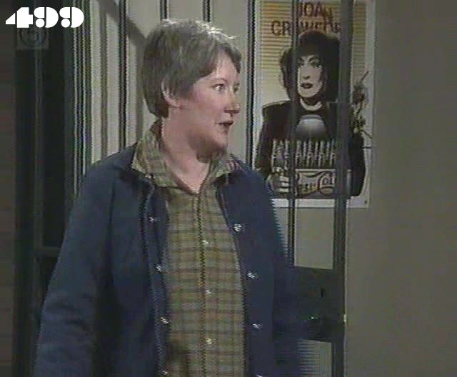 EPISODE 497Broadcast on Channel 5 Saturday 27 March 1999 04:40 Len tries to get Joan sacked.![]() Meg ~ Elspeth Ballantyne Judy ~ Betty Bobbitt Joan ~ Maggie Kirkpatrick Ann ~ Gerda Nicholson Myra ~ Anne Phelan Reb ~ Janet Andrewartha Len ~ Maurie Fields Pixie ~ Judy McBurney Bobbie ~ Maxine Klibingaitis Marlene ~ Genevieve Lemon Sam ~ Robyn Gibbes Sarah ~ Nell Johnson Phillip ~ Steve Kuhn Brian Lowe ~ Mathew King Det. Insp Rouse ~ Paul Karo William Coleby ~ Hu Pryce Sgt Jenny Duncan ~ Sarah Craig Officer Slattery ~ Dorothy Cutts Alice ~ Lois Collinder Gate Guard Greg ~ Rod Allen Detective No. 1 ~ Glenn Robbins Detective No. 2 ~ Ian Mumby Constable No. 1 ~ Bill Binks Constable No. 2 ~ Justin Gaffney Police Driver ~ Fred Galliver Phillip is miscredited as "Phillips": Judy's rather nice nickname for him is "Crystal" Cleary (or possibly that's "Krystal") | Marlene has her head stuck down the loo by Lou, but Myra interrupts and rescues her. Ann shows Meg the letter and its reference to her dying "like this rat". Myra finds Judy bashed but they just end up arguing, with Judy accusing Myra of not doing her proper job as top dog. Joan takes her revenge on Marlene by spreading shampoo and powder on the floor and making her clean it up. Inspector Rouse tells Ann of the suspects and leads they were following up when Nev's confession side-tracked them: they include the Parker family, the Baker's and an ex boyfriend of Phyllis called Brian Lowe: he had just come out of prison two months ago but had now disappeared. Meg offers to have Ann stay with her so she is not alone with the police surveillance. Myra heavies Lou |